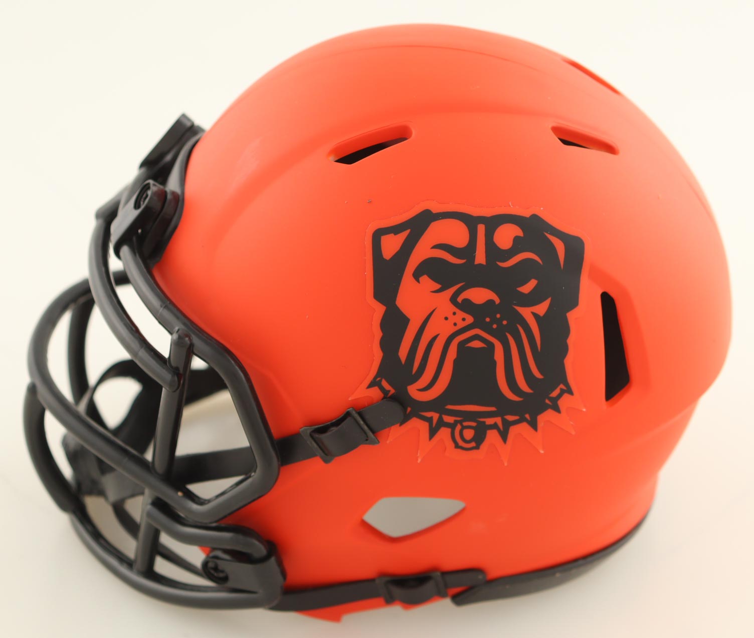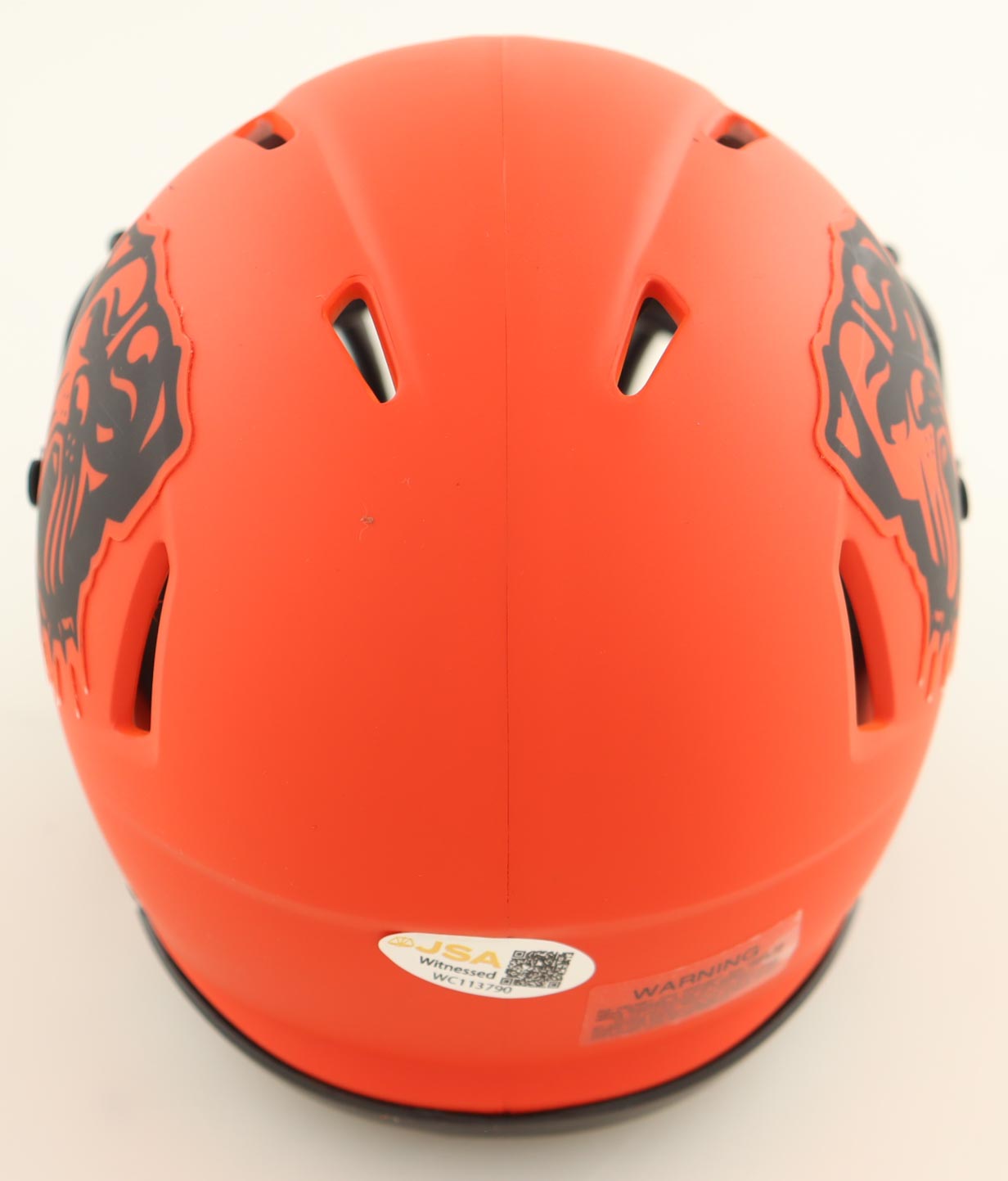 Riddell Cleveland Browns Rave Alternate speed mini helmet has been hand-signed by Greg Pruitt.