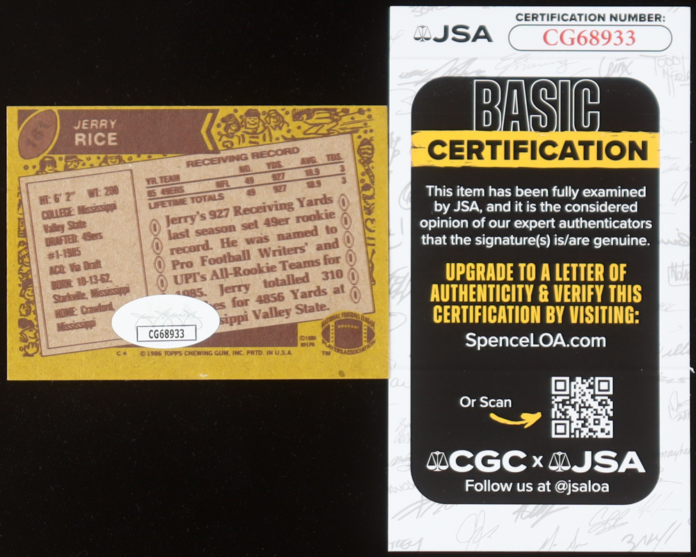 Jerry Rice Signed 1986 Topps #161 RC (JSA)
