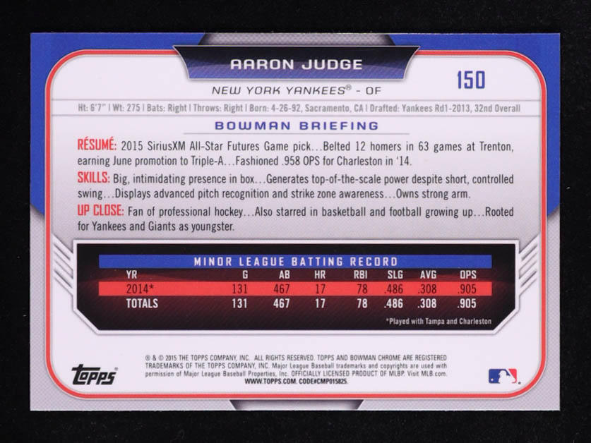 Aaron Judge 2015 Bowman Chrome Draft #150 RC