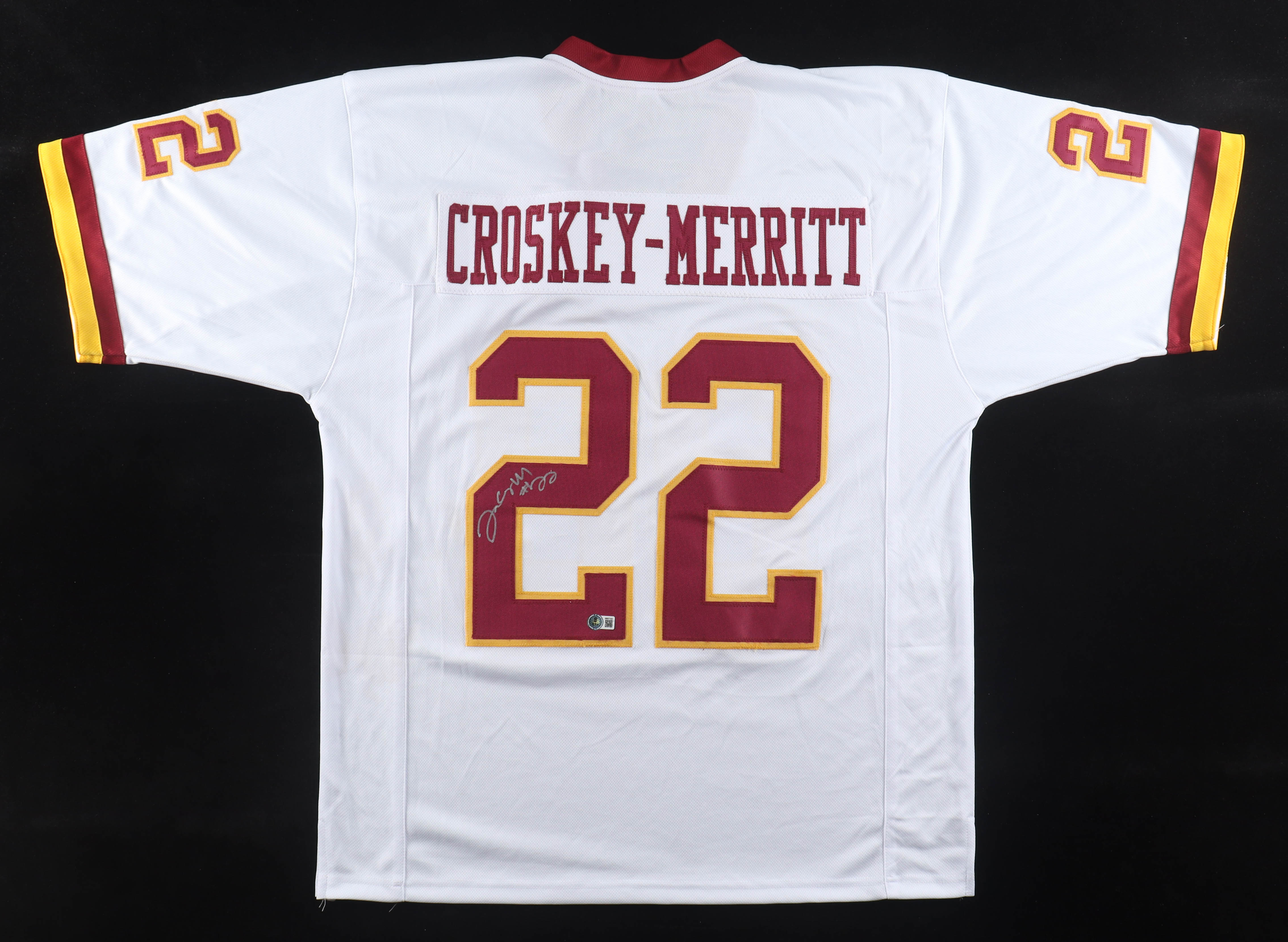 Custom jersey with everything sewn on, size XL. Hand-signed by Jacory Croskey-Merritt.