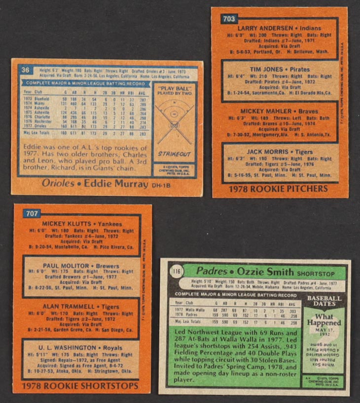 1978 Topps Baseball Complete Set of (726) Cards with Eddie Murray #36 RC, Rookie Shortstops #707, 1978 Rookie Pitchers #703