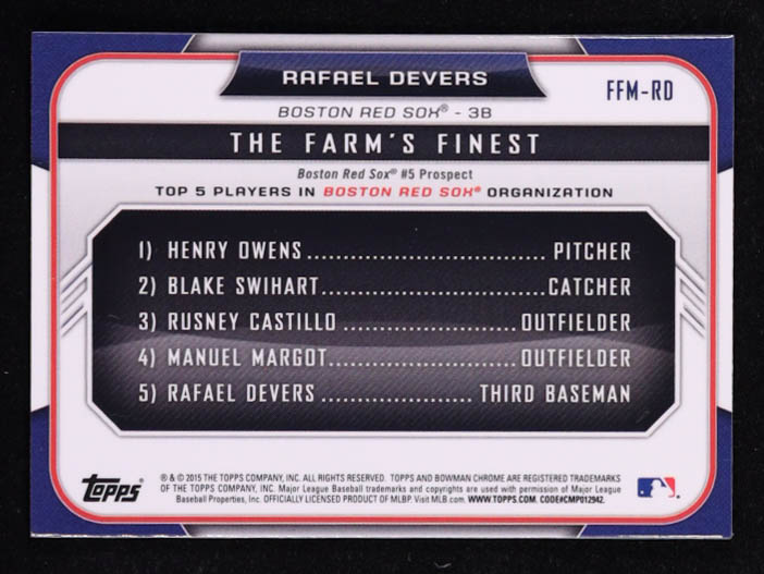 Rafael Devers 2015 Bowman Chrome Farm's Finest Minis #FFMRD