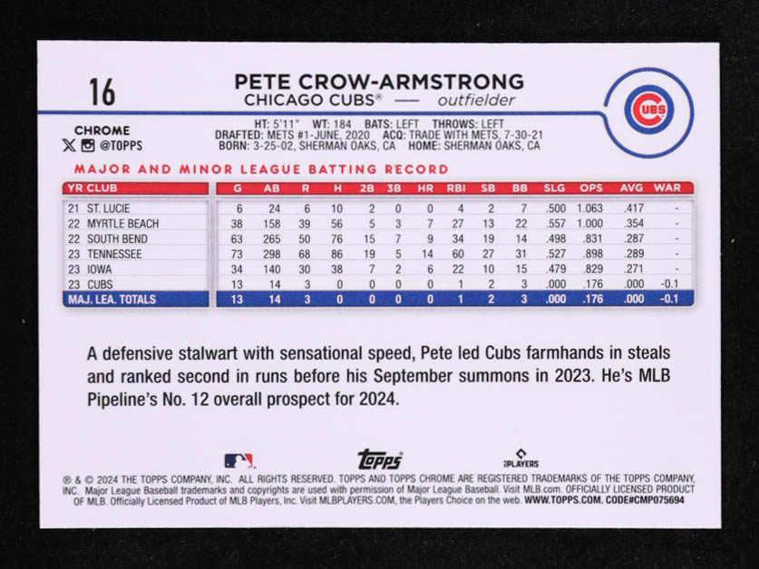 Pete Crow-Armstrong 2024 Topps Chrome Prism Refractors #16 RC