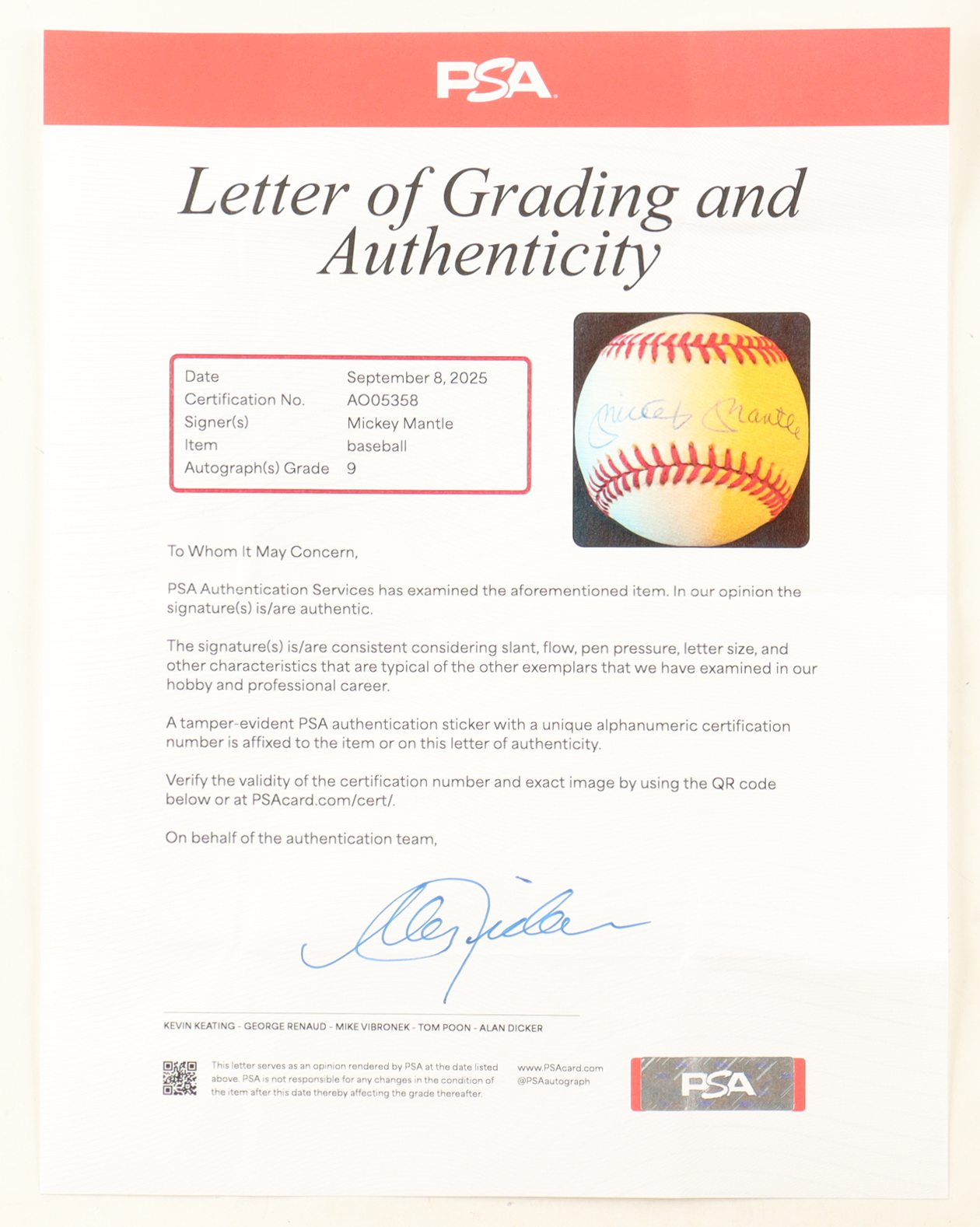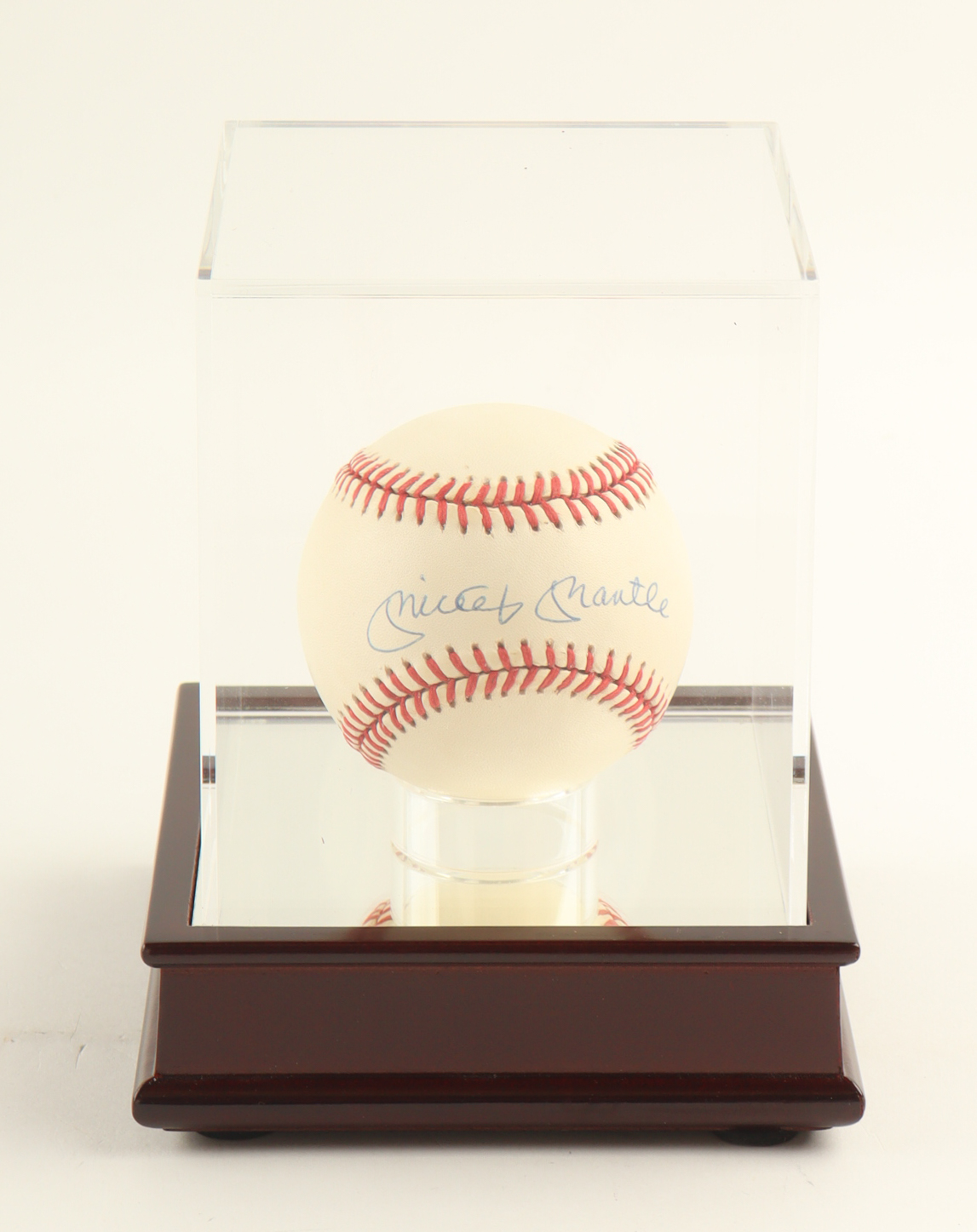 Mickey Mantle Signed OAL Baseball with Display Case (PSA Auto 9)