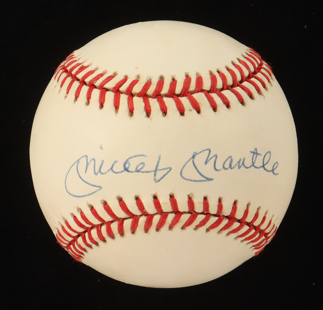 Rawlings Official American League Baseball. Hand-signed by Mickey Mantle (D. 1995, New York Yankees, HOF). Please note, the baseball is naturally toned.