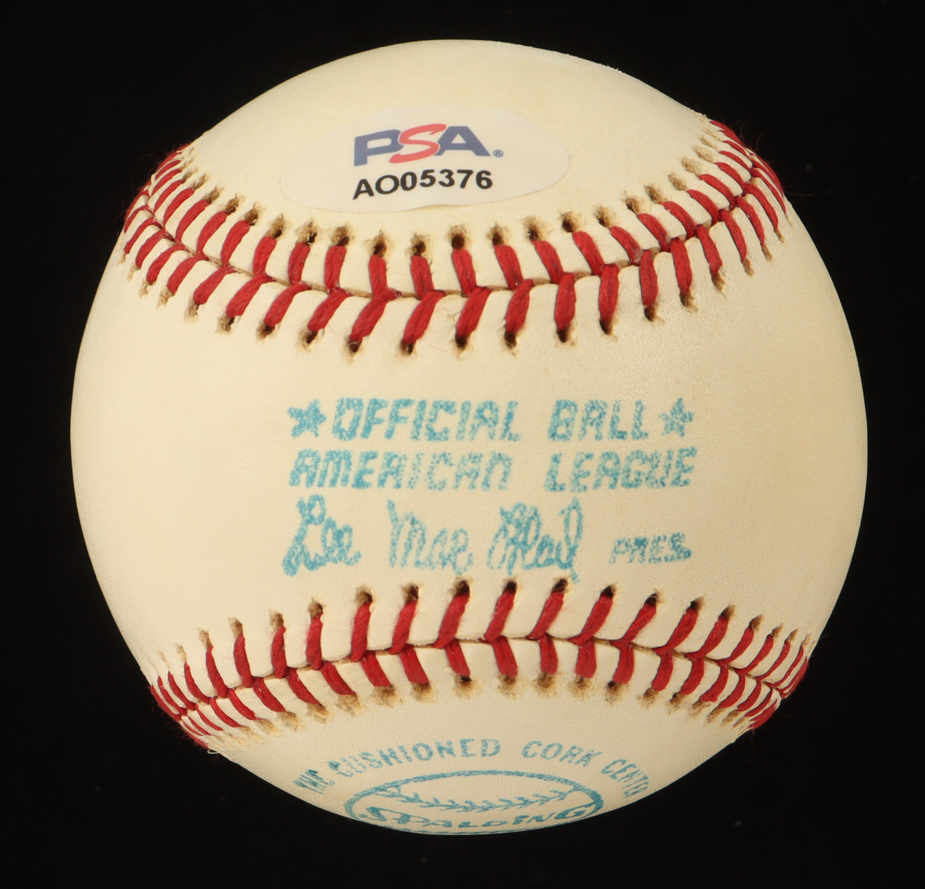 Joe DiMaggio Signed OAL Baseball with Display Case (PSA)