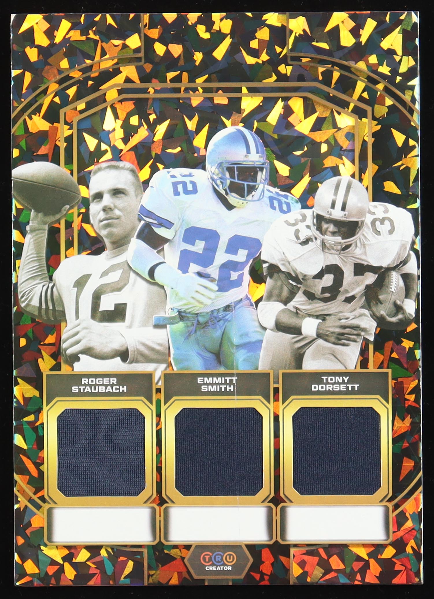 Roger Staubach | Emmitt Smith | Tony Dorsett 2024 TruSport Jumbo TruCreator Cracked Ice #TJCRSESTD JSY