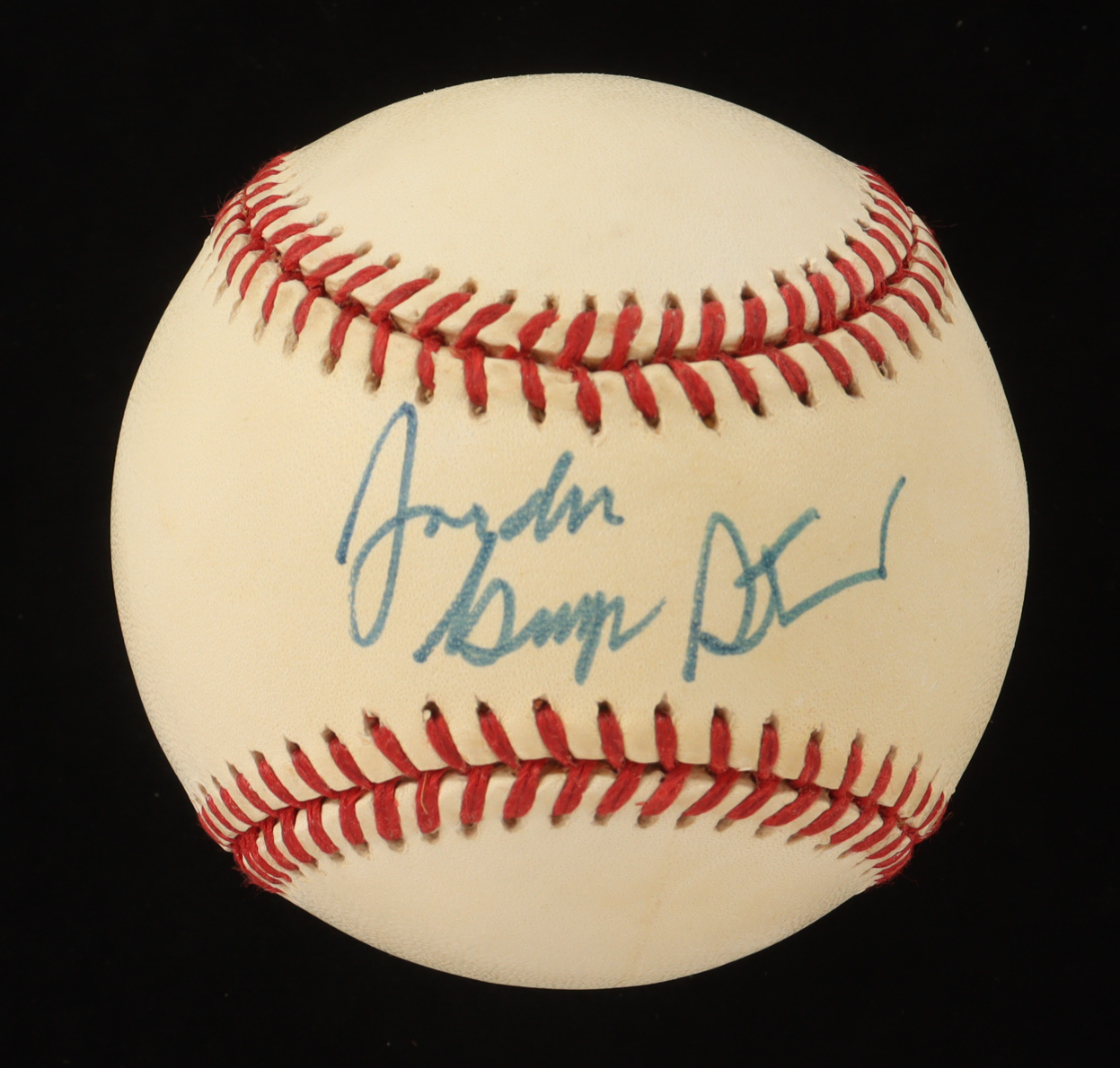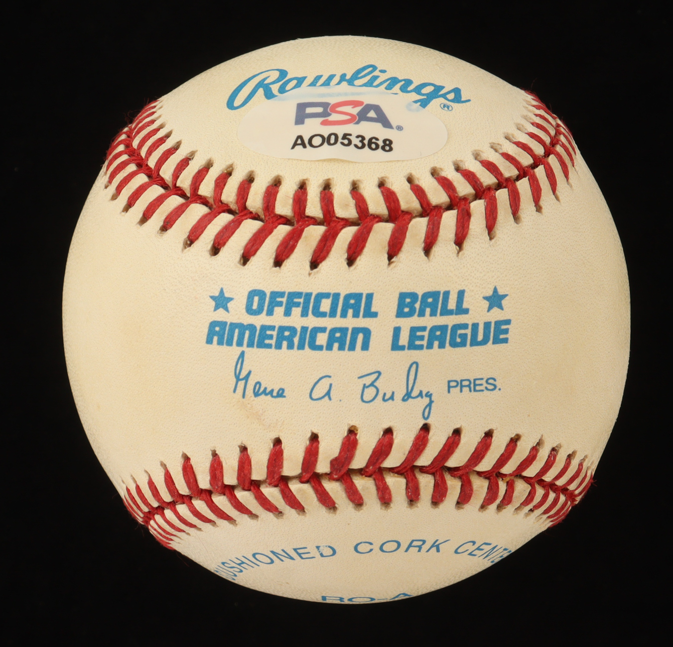 Rawlings Official American League Baseball. Hand-signed by George Steinbrenner. Please note, the baseball is naturally toned and stained.