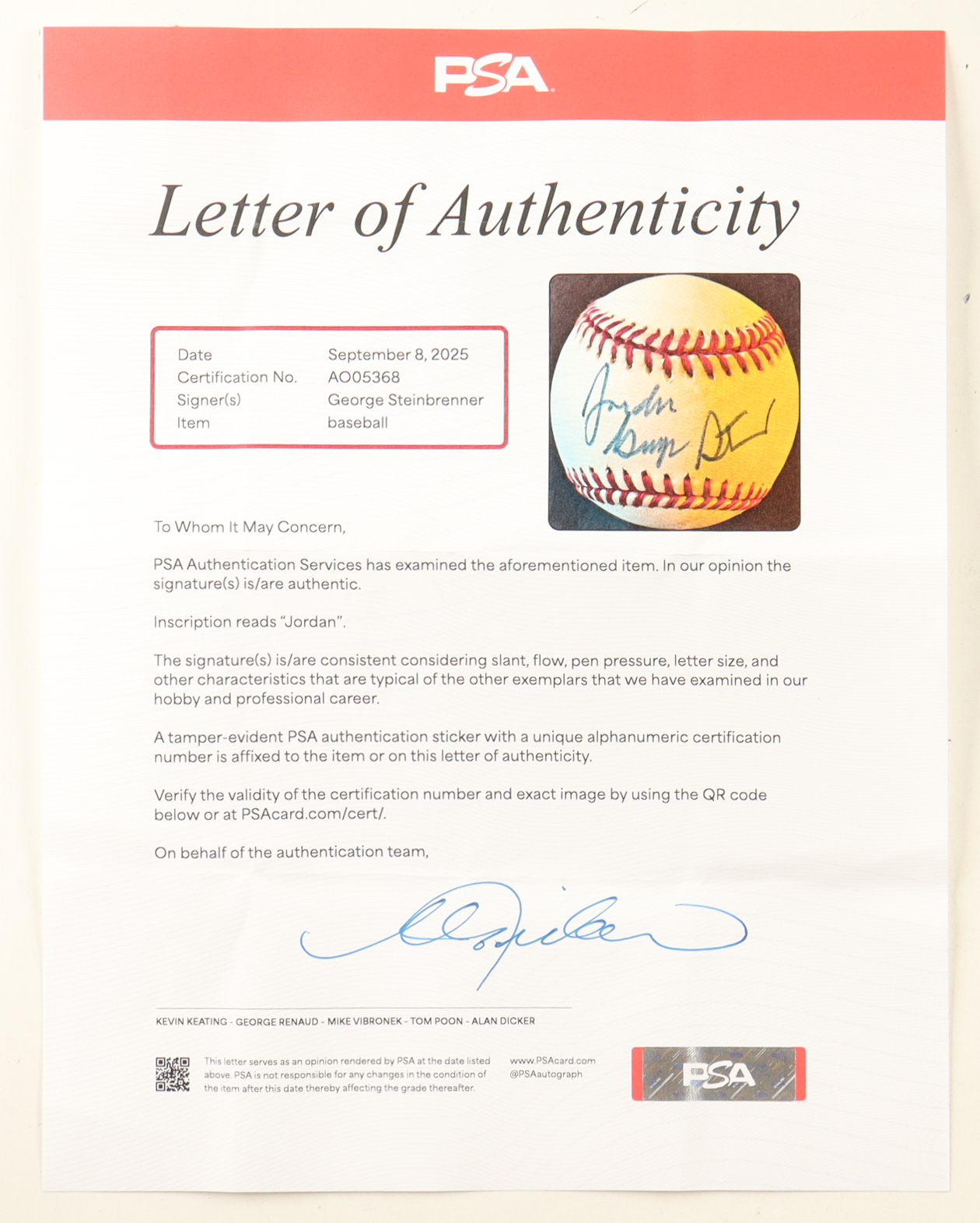 The autograph(s) includes an official PSA/DNA hologram and matching LOA for authenticity purposes.