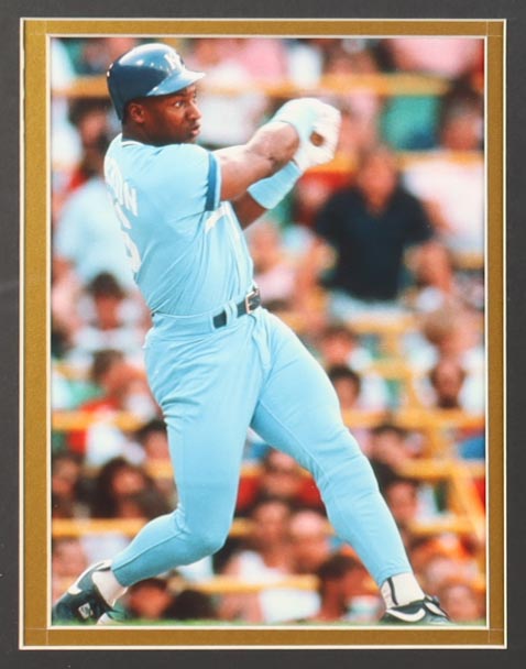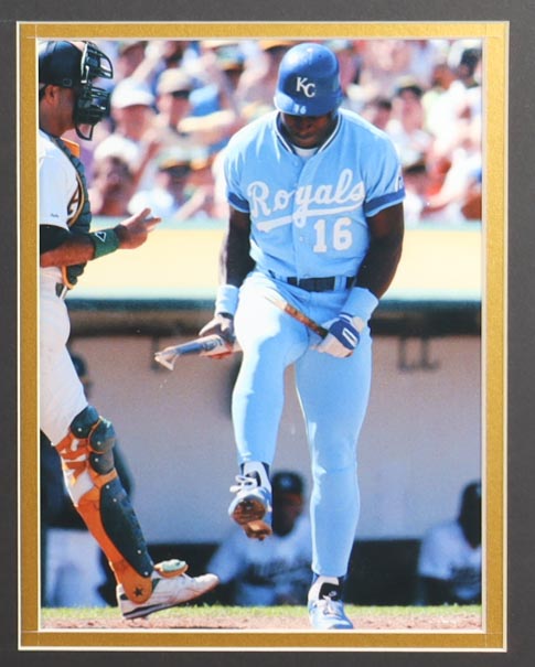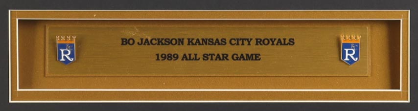 Custom frame measures approximately 36" x 43" in size and features a jersey that has been hand-signed by Bo Jackson. Display also includes (2) Royals Logo Pins