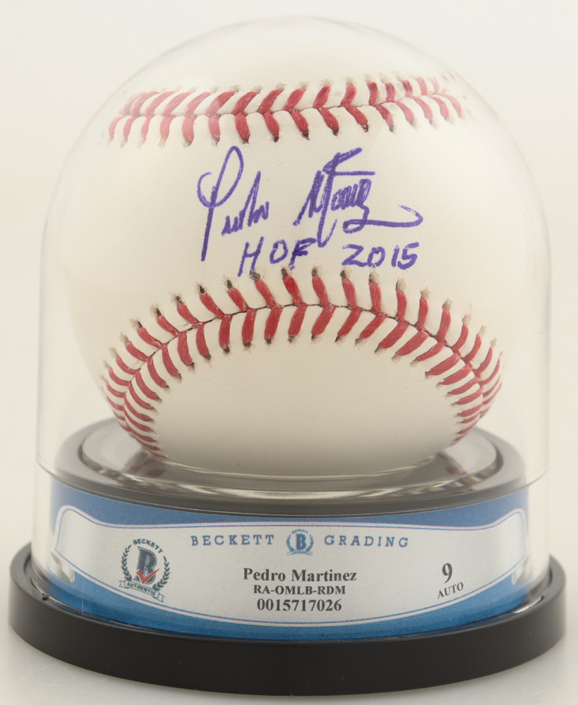 Pedro Martinez Signed OML Baseball Inscribed "HOF 2015" (BGS | Autograph Grade 9)