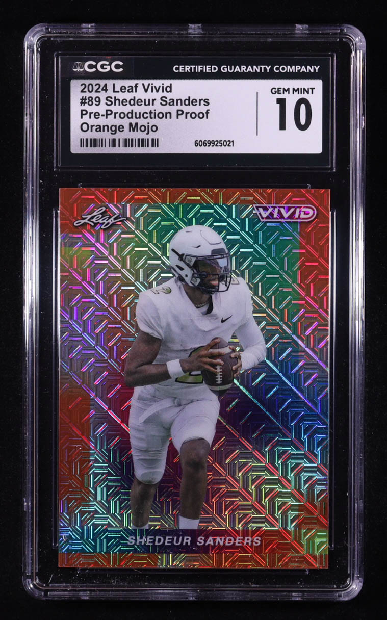 Shedeur Sanders 2024 Leaf Vivid Pre-Production Proof Orange Mojo #89 #1/1 RC (CGC 10)