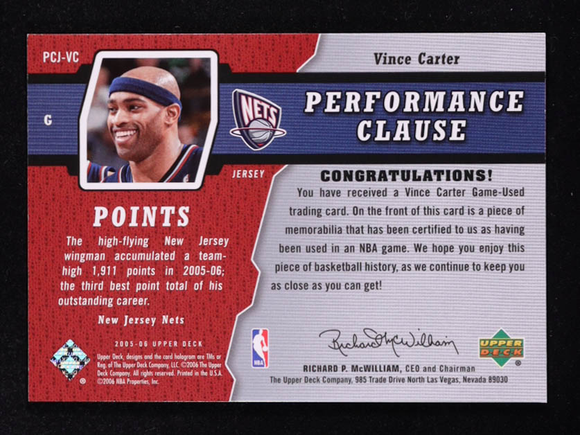 Vince Carter 2005-06 Upper Deck Performance Clause Jerseys #VC #244/250