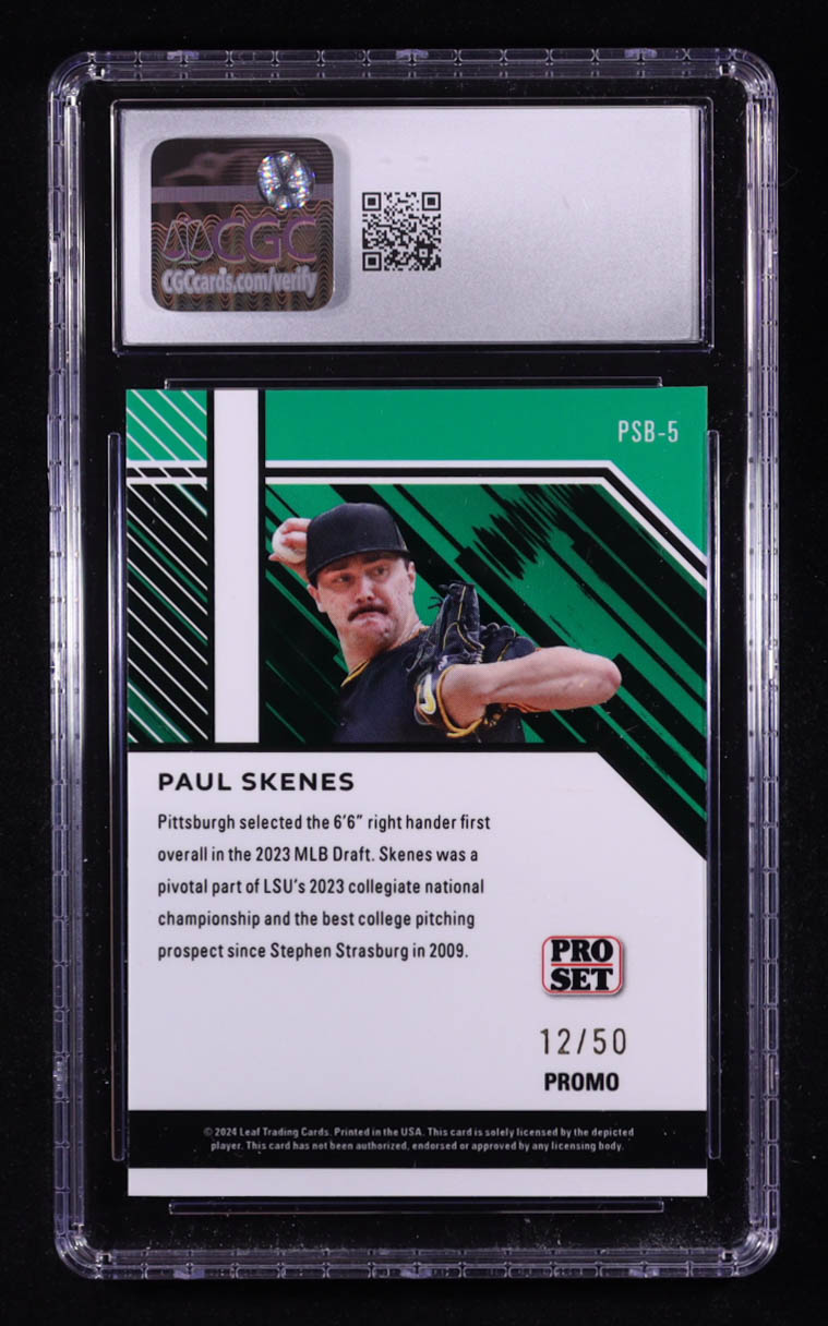 Paul Skenes 2024 Leaf Collective Promos Press Pass Green Shimmer #PSB5 #12/50 RC (CGC 9.5)