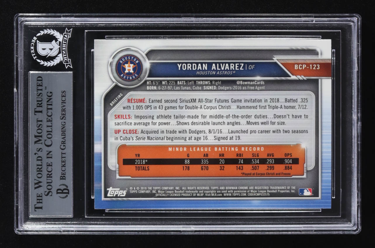 Yordan Alvarez Signed 2019 Bowman Chrome Prospects Auto #BCP-123 RC (Beckett | Autograph Grade BGS Authentic)