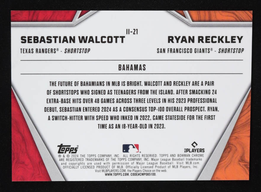Sebastian Walcott / Ryan Reckley 2024 Bowman Chrome International Impact Mini-Diamond Refractors #II21 RC #014/150
