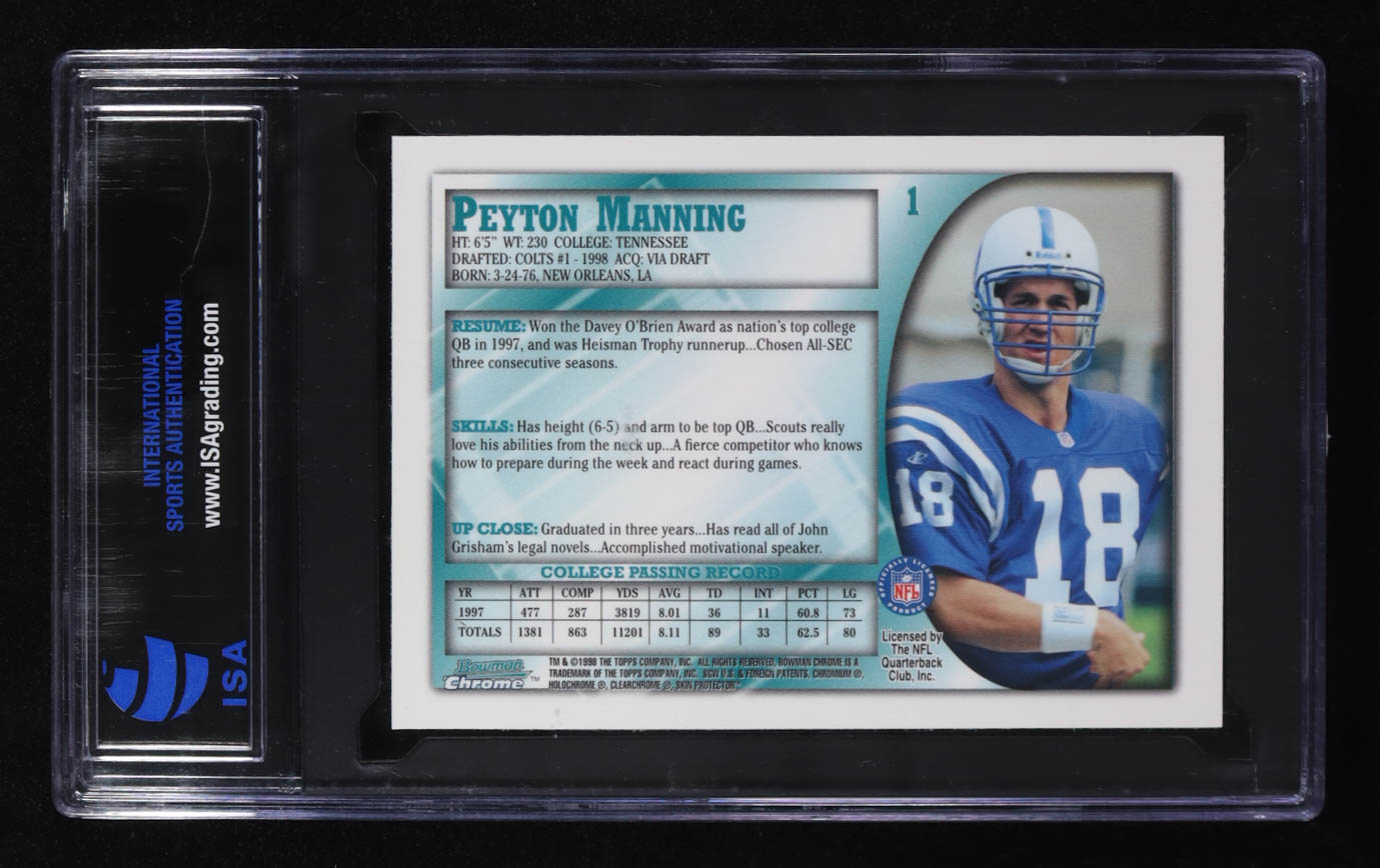 Peyton Manning 1998 Bowman Chrome #1 RC (ISA 10)