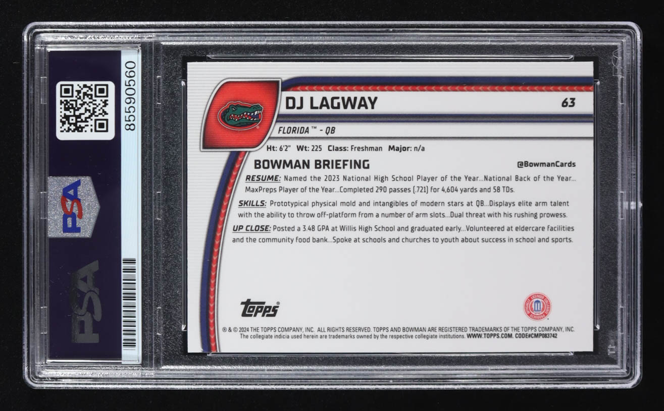 D.J. Lagway Signed 2024 Topps 1st Bowman U Chrome #63 RC (PSA | Autograph Graded PSA 10)