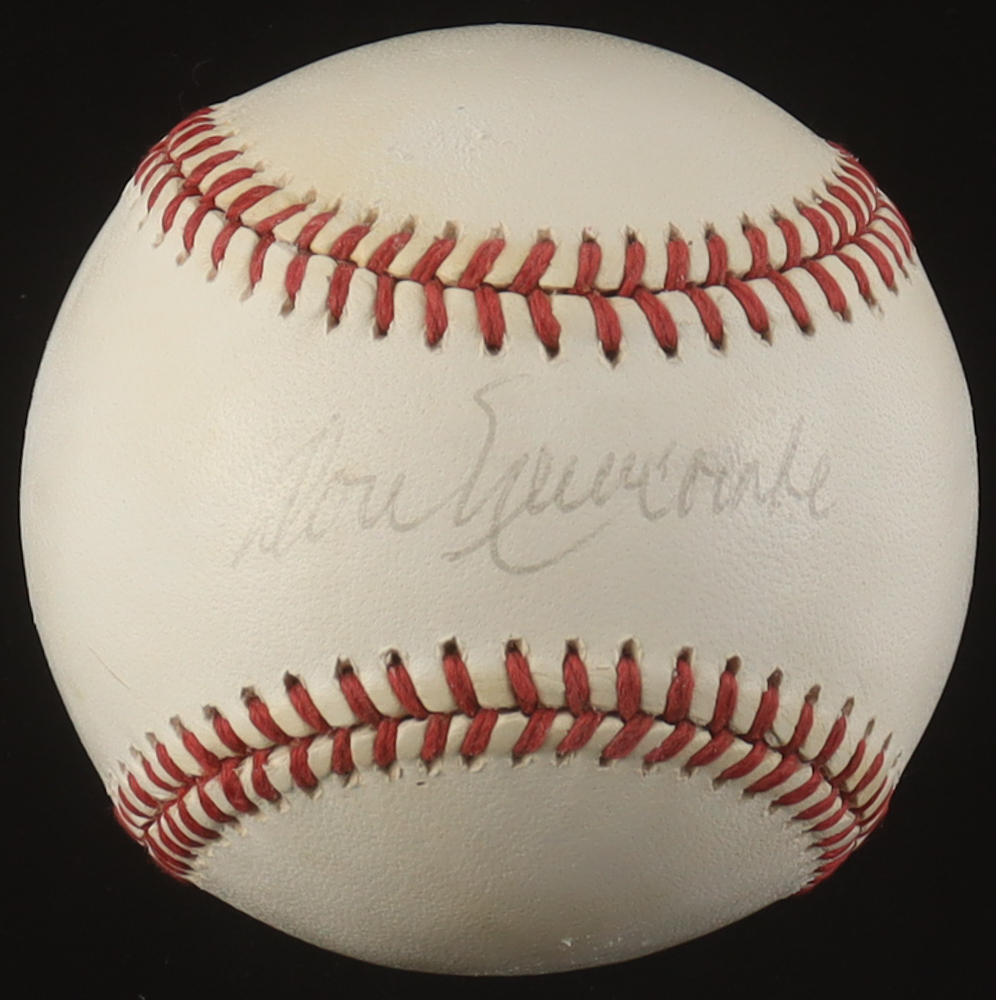 Rawlings Official National League Baseball. Hand-signed by Don Newcombe (D. 2019, Los Angeles Dodgers). Please note, the signature is fading and there are stains throughout the baseball.