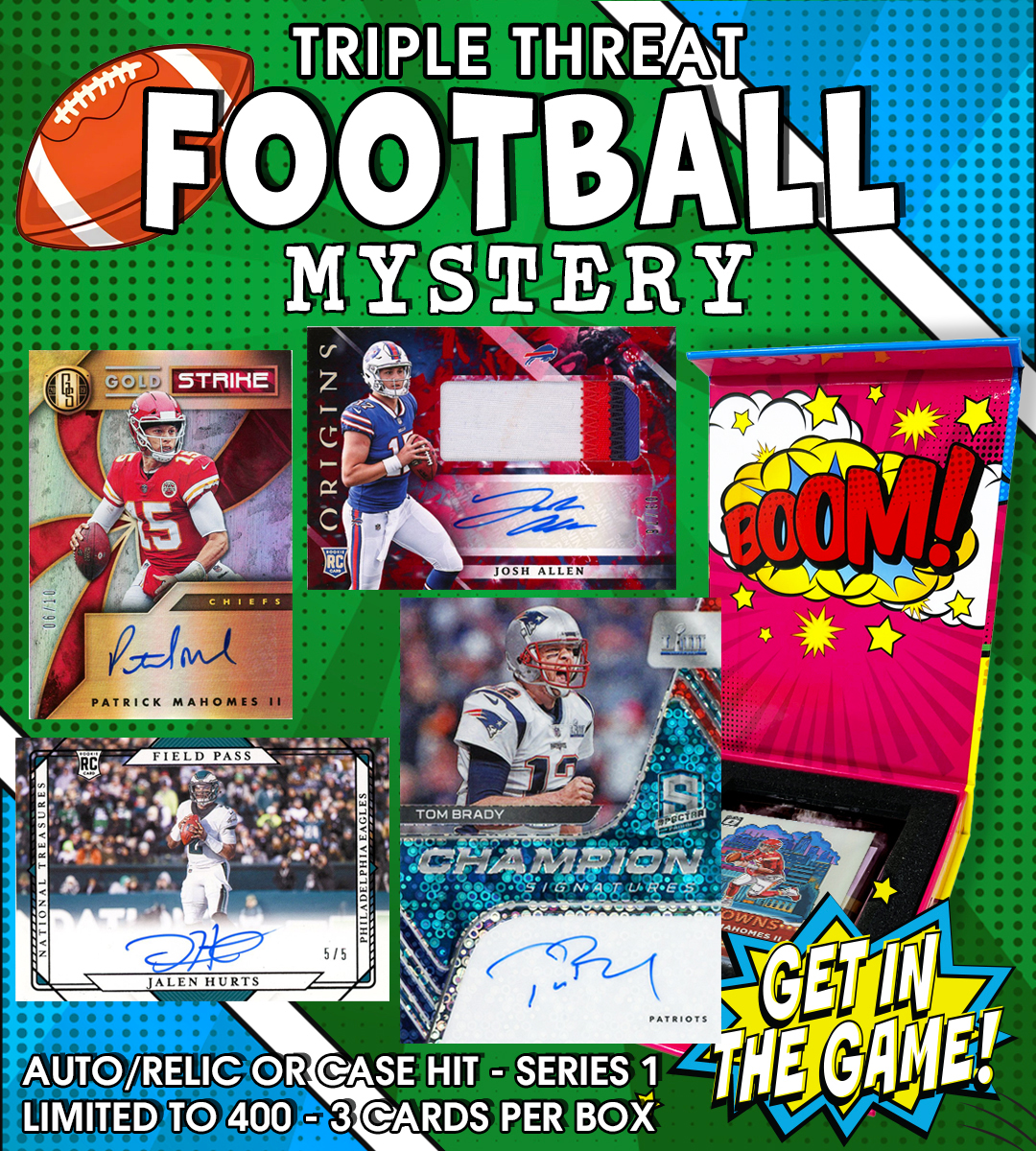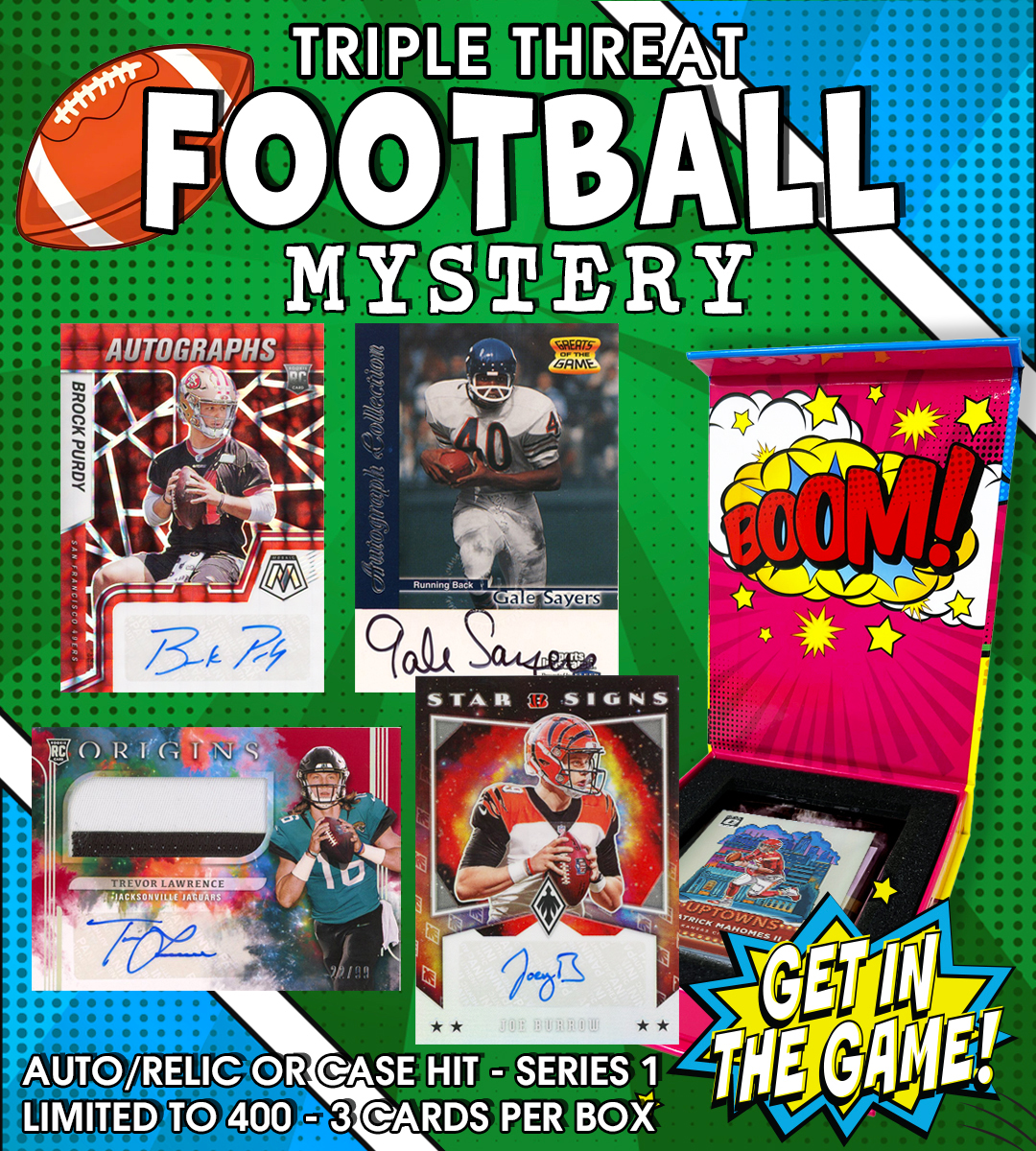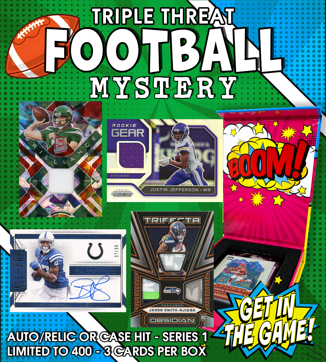 NEW PRISTINE EXCLUSIVE! Triple Threat Football Auto/Relic/Case Hit BOOM BOX, Series 1 Mystery Box!