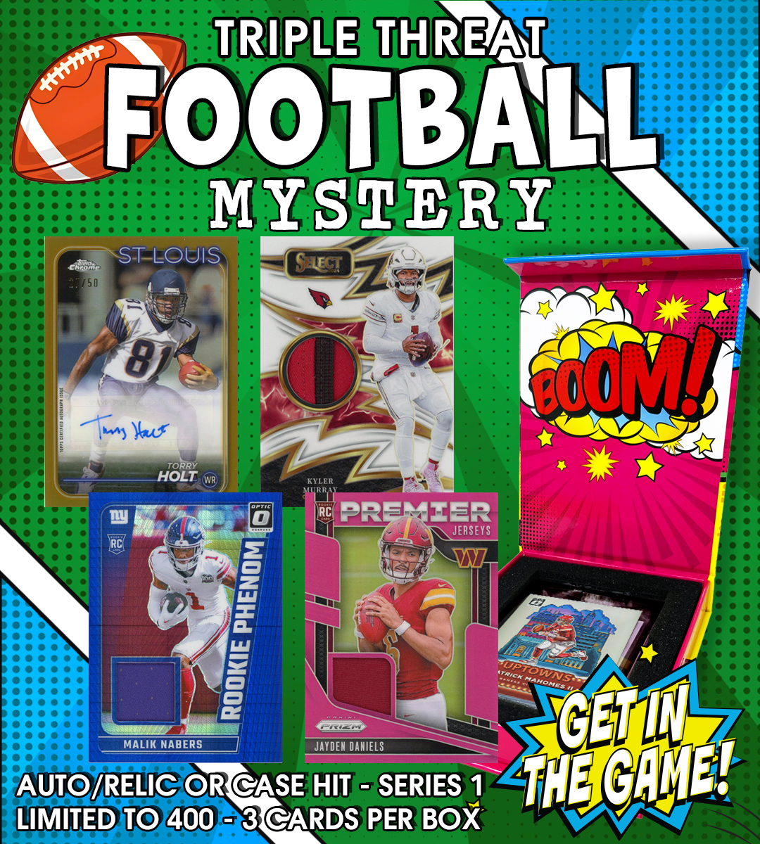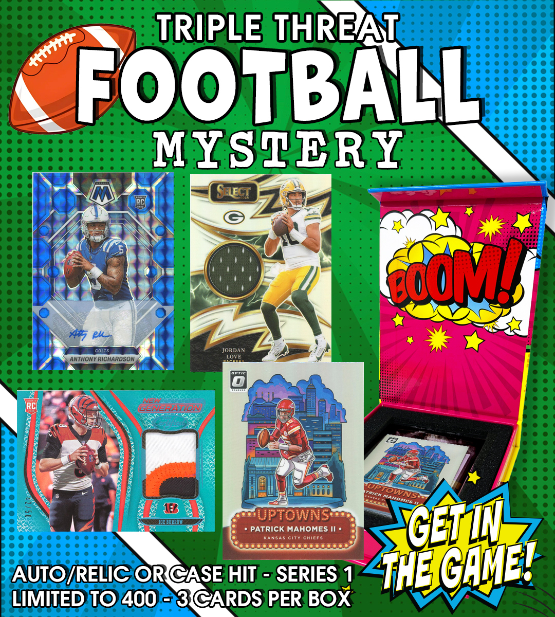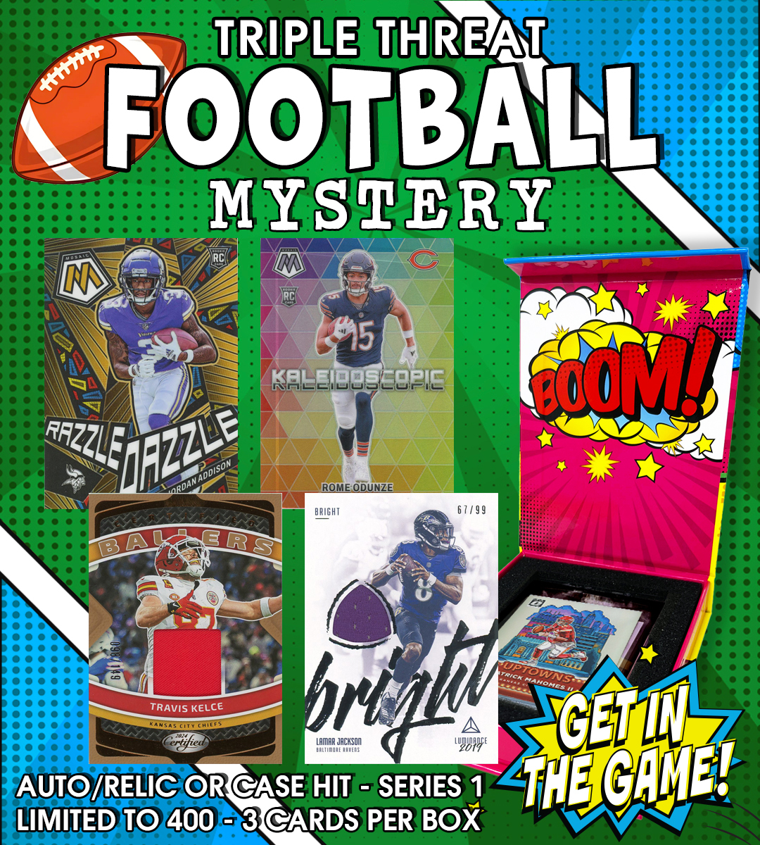 NEW PRISTINE EXCLUSIVE! Triple Threat Football Auto/Relic/Case Hit BOOM BOX, Series 1 Mystery Box!
