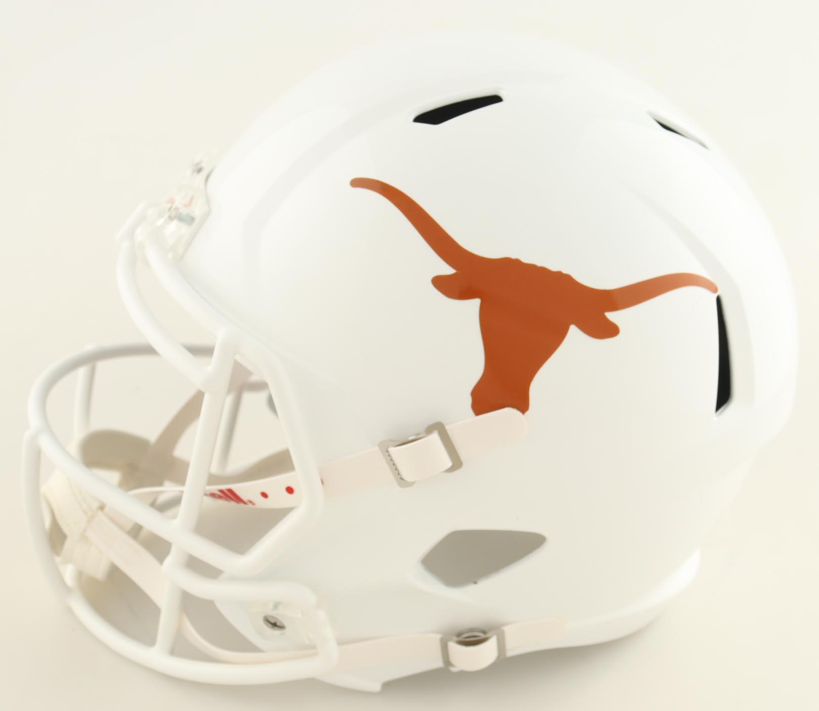 Riddell Texas Longhorns full-size replica helmet. Hand-signed and inscribed by Bijan Robinson. Please note the inscription is smudged partially.