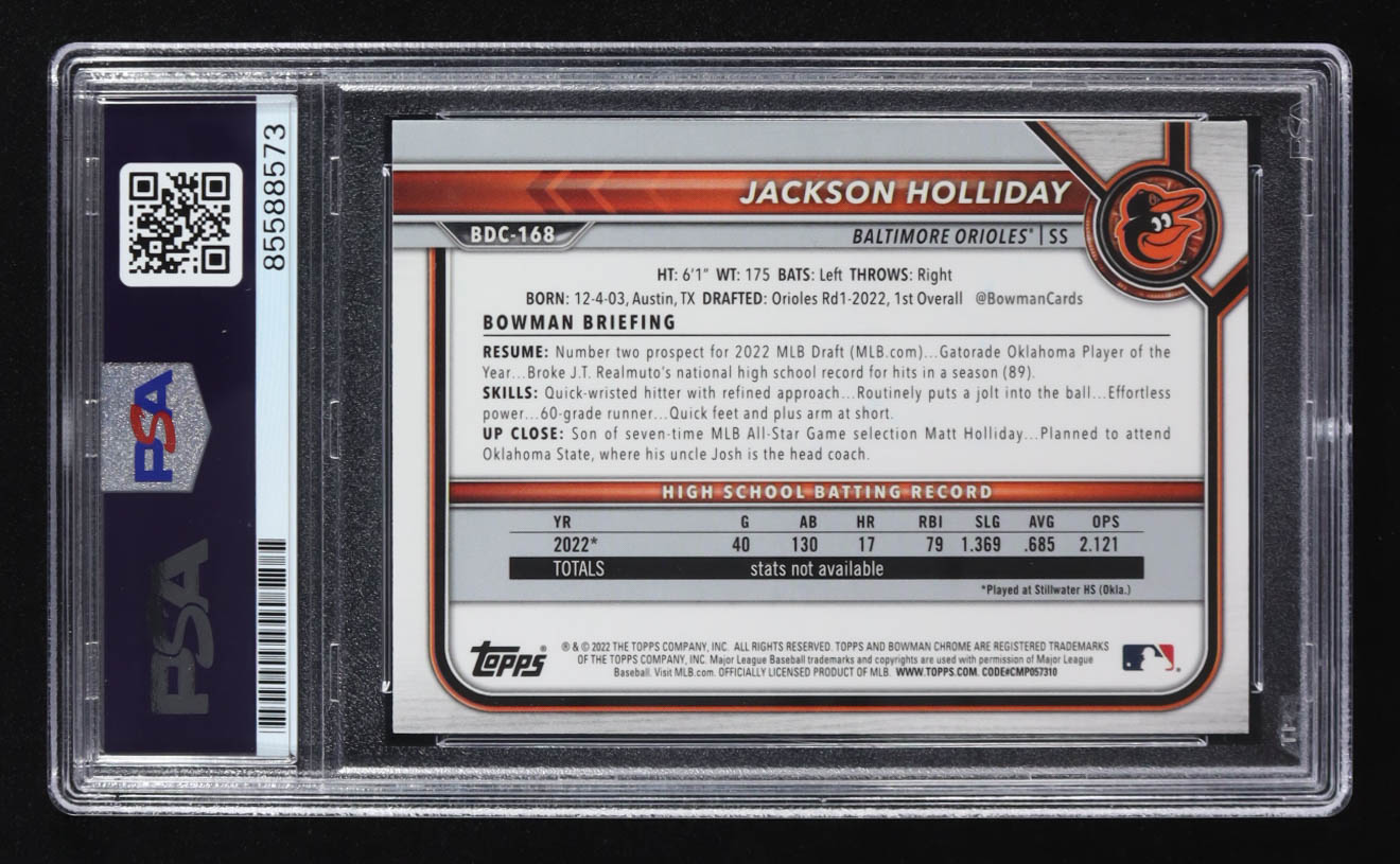 Jackson Holliday Signed 2022 Topps Bowman Chrome 1st #BDC-168 RC (PSA)