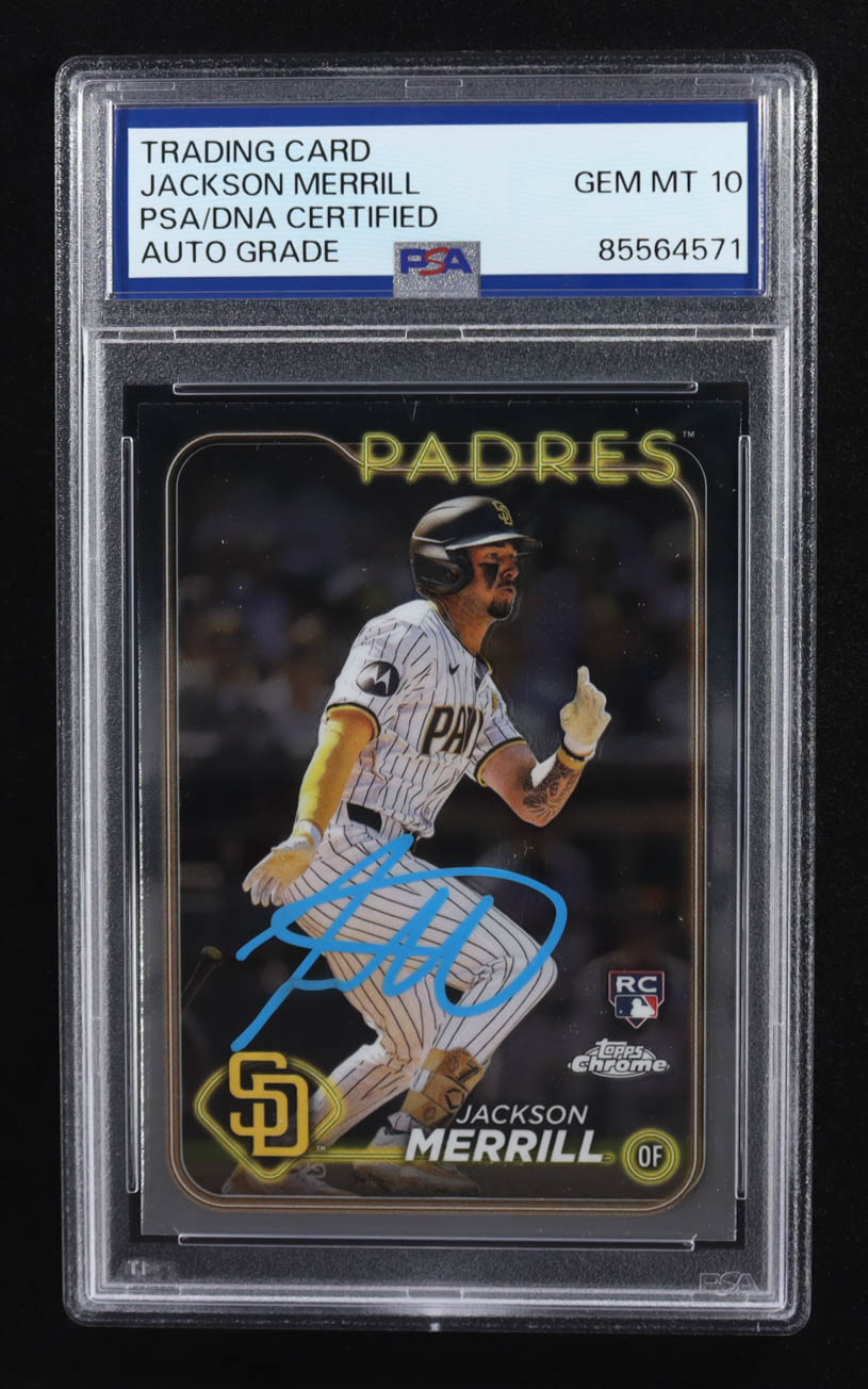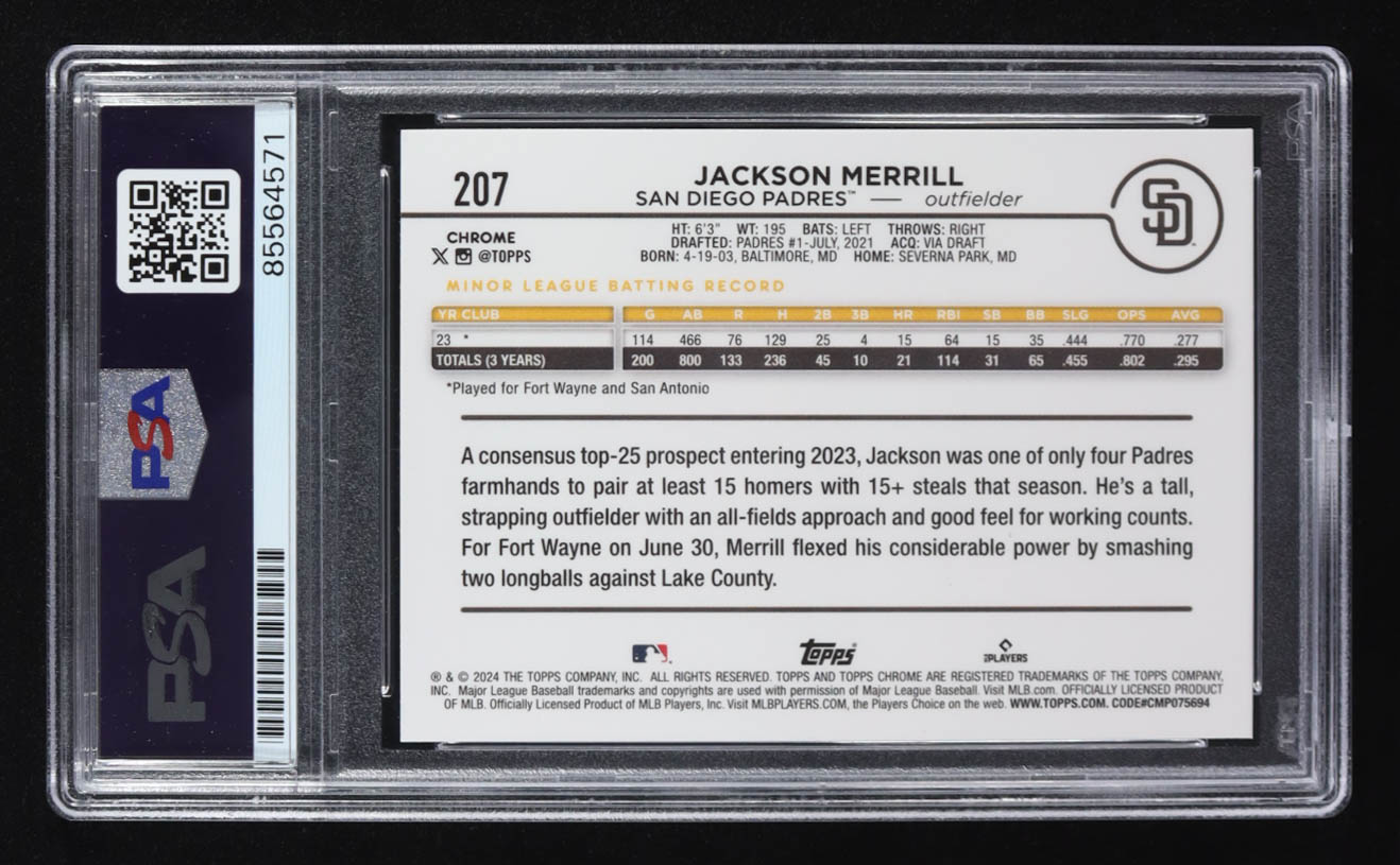 Jackson Merrill Signed 2024 Topps Chrome #207 RC (PSA | Autograph Graded PSA 10)