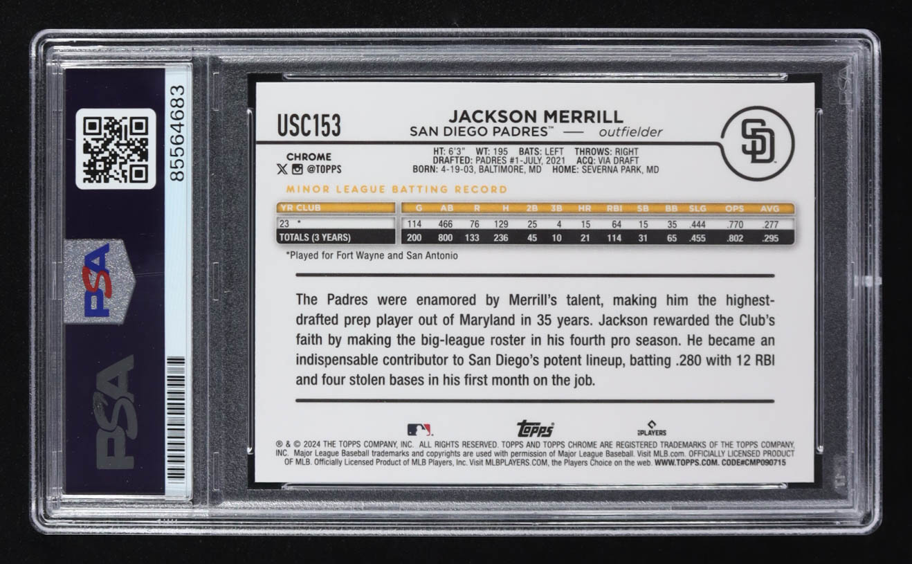 Jackson Merrill Signed 2024 Topps Chrome #USC153 RC (PSA)