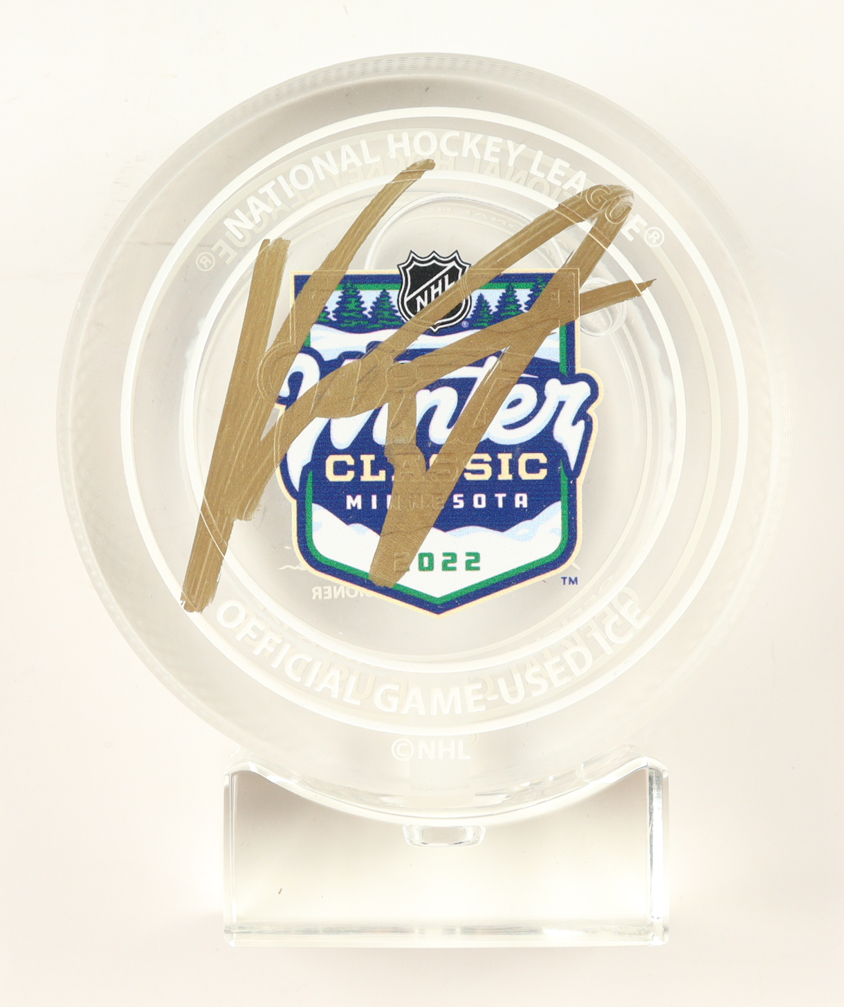 Kirill Kaprizov Signed Crystal Hockey Puck Filled with Game-Used 2022 Winter Classic Ice (Beckett & Fanatics)