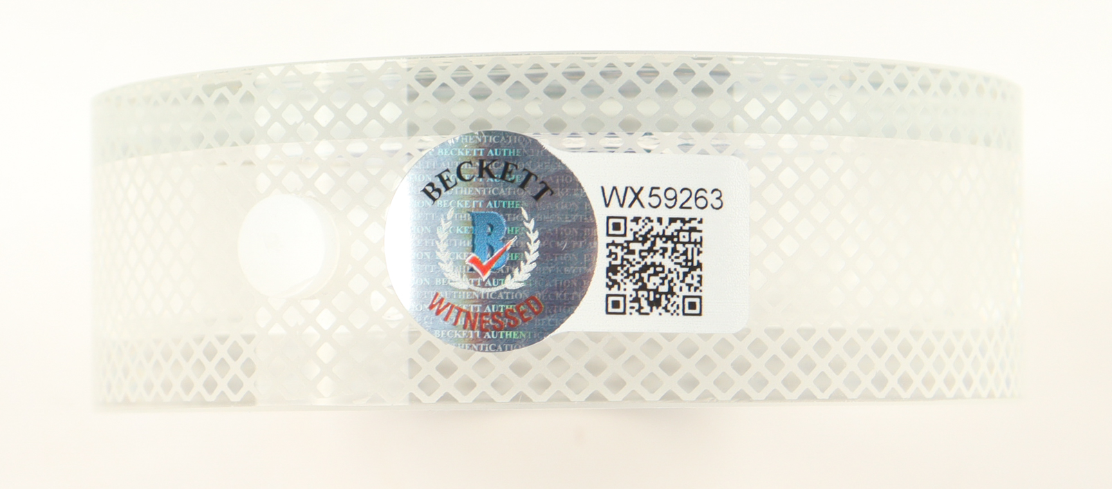The autograph includes an official Fanatics hologram as well as an official Beckett Authentication Services serially numbered hologram for authenticity purposes. The signing of this item was witnessed by Beckett.