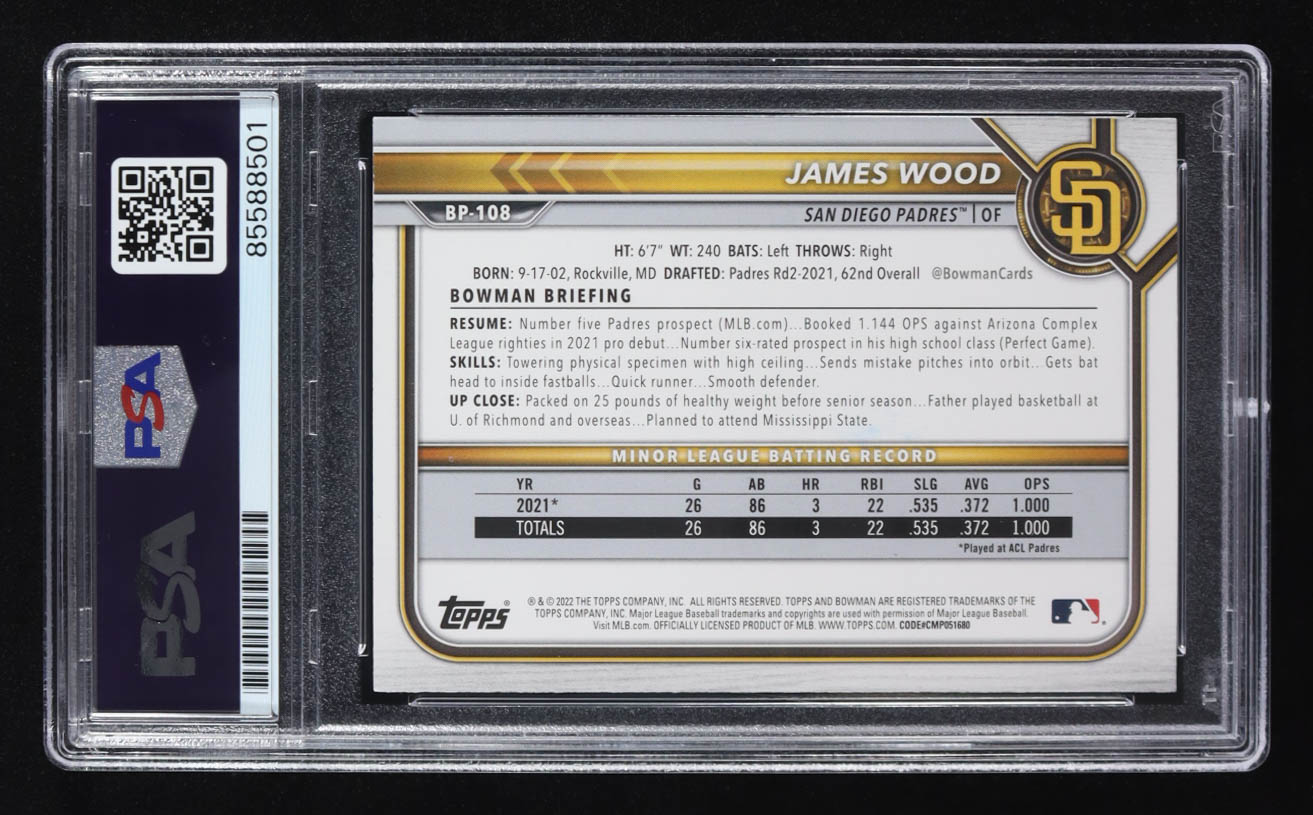 James Wood Signed 2022 Topps Chrome Bowman 1st #BP-108 RC (PSA | Autograph Graded PSA 10)