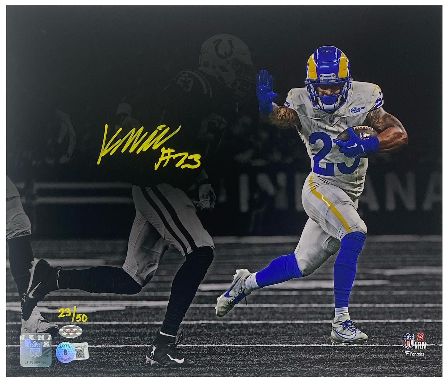 Photo measures 11" x 14" in size and has been hand-signed by Kyren Williams (Los Angeles Rams). The photo is limited edition and numbered #23/50.