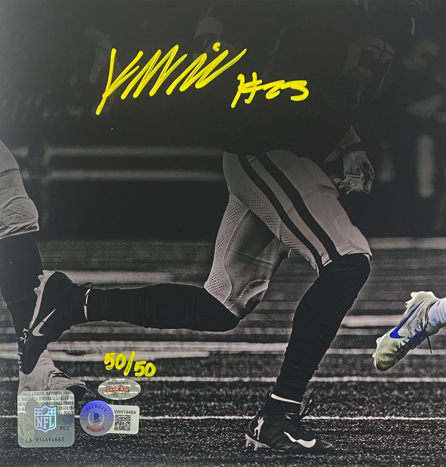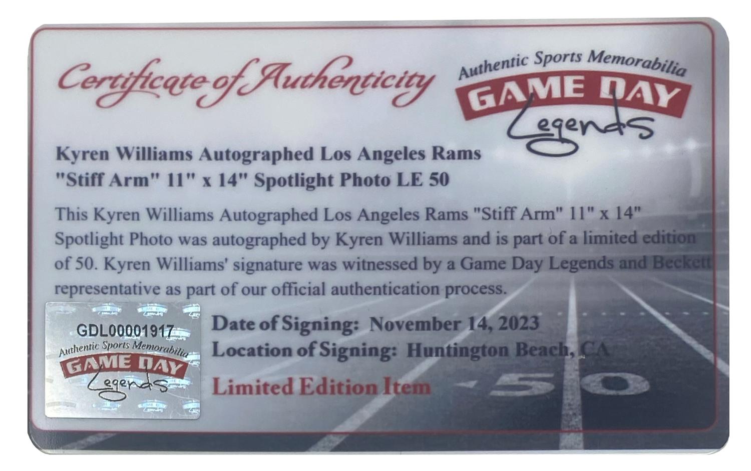 Photo measures 11" x 14" in size and has been hand-signed by Kyren Williams (Los Angeles Rams). The photo is limited edition and numbered #50/50.