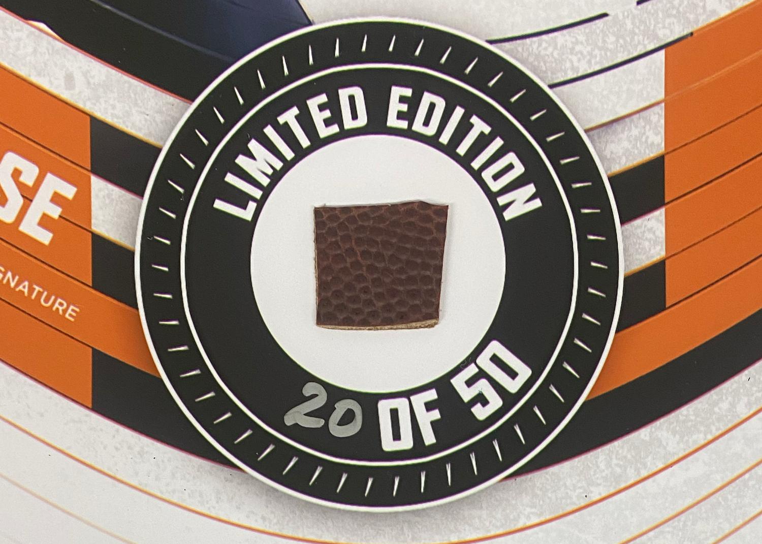 Custom frame measures 15" x 17" and features a piece of a game-used football as well as a photo of Ja'Marr Chase (Cincinnati Bengals).