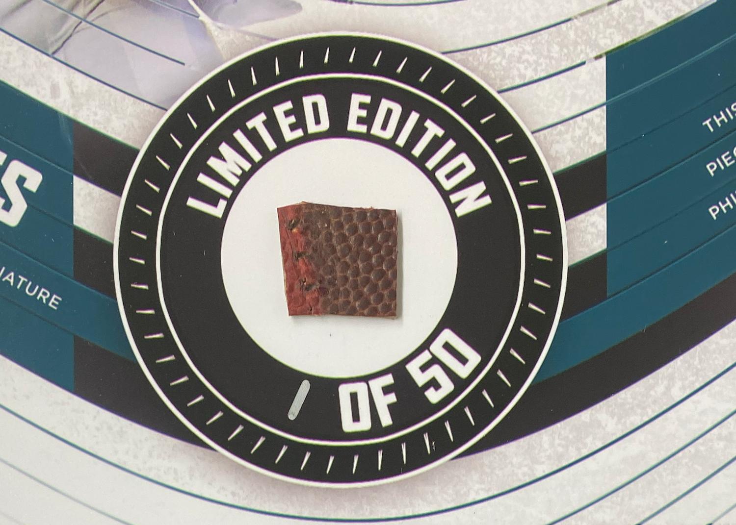 Custom frame measures 15" x 17" and features a piece of a game-used football as well as a photo of Jalen Hurts (Philadelphia Eagles). You will receive number "1" from the limited edition series. Please note, the signature is a facsimile signature.