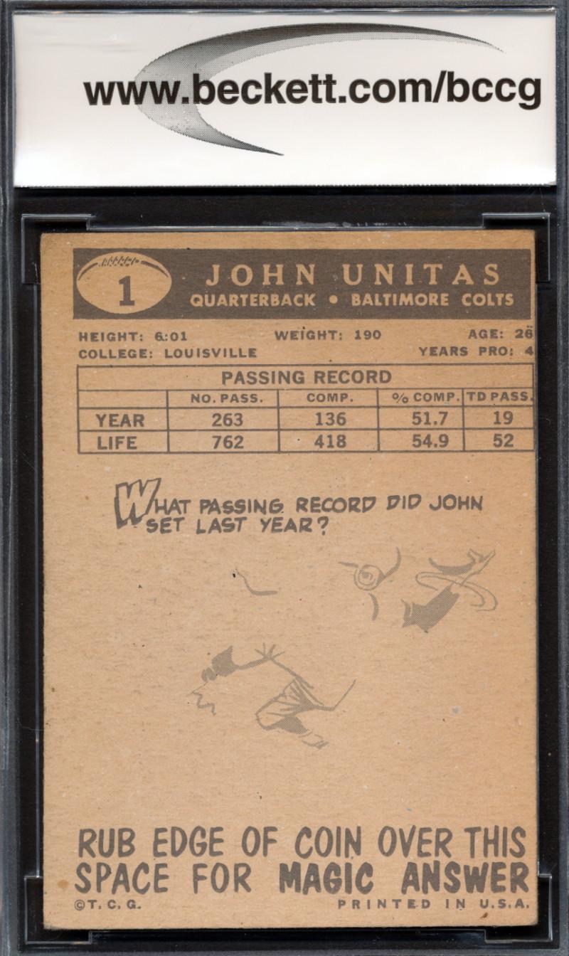 Johnny Unitas 1959 Topps #1 (BCCG 7)