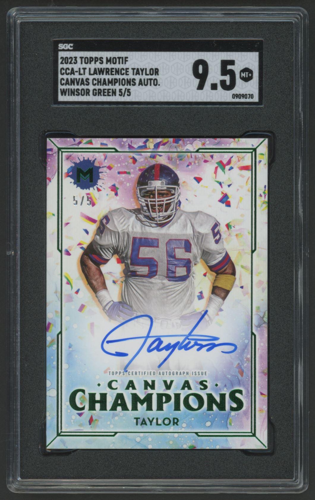 Lawrence Taylor 2023 Topps Motif Canvas Champions Autographs Winsor Green #CALT #5/5 (SGC 9.5)