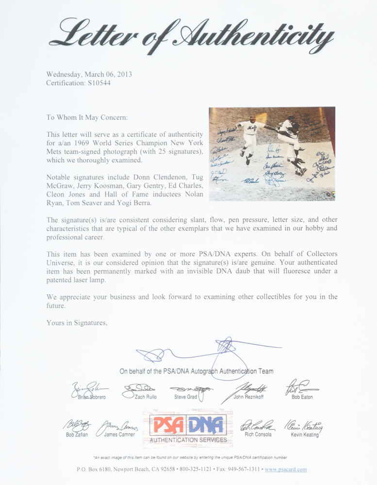 Nolan Ryan, Tom Seaver, Yogi Berra | 1969 Mets World Series Champions 20x24 Photo Signed By (25) (PSA)