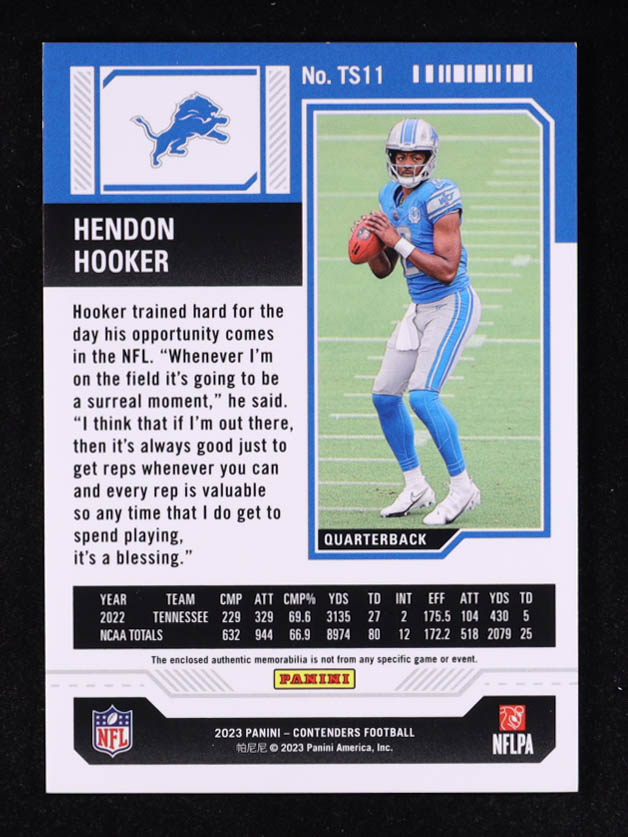 Hendon Hooker 2023 Panini Contenders Rookie Ticket Swatches #11 RC