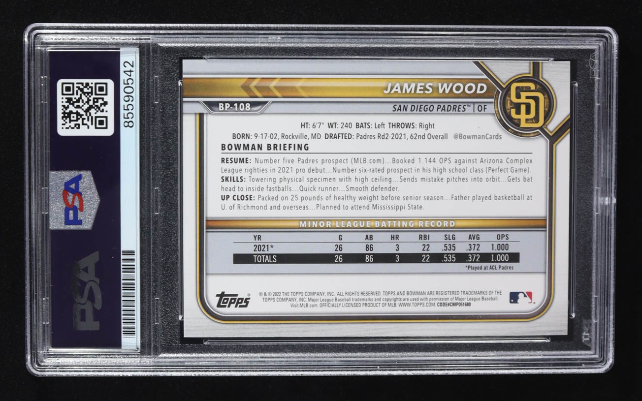 James Wood Signed 2022 Topps Chrome Bowman 1st #BP-108 RC (PSA | Autograph Graded PSA 10)