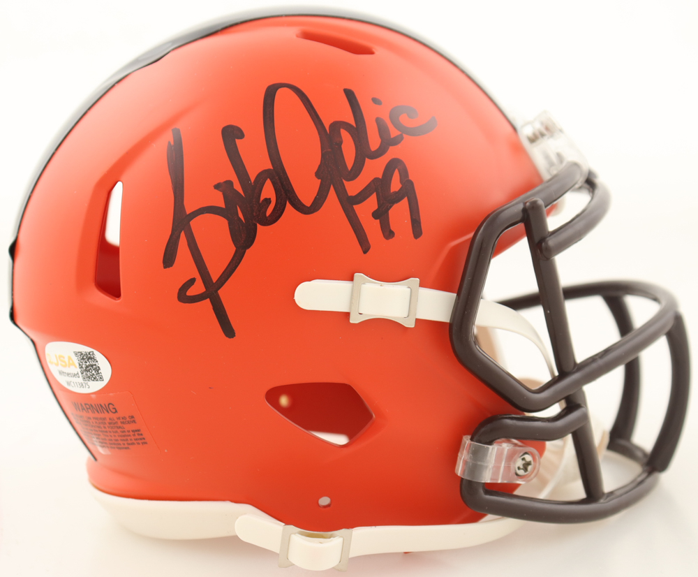 Riddell Cleveland Browns Speed mini helmet has been hand-signed by Bob Golic.