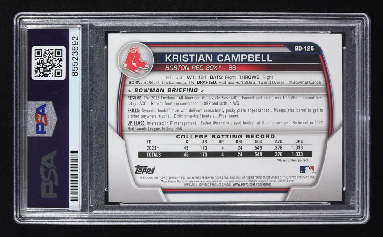 Kristian Campbell Signed 2023 Topps Bowman 1st #BD-125 RC (PSA)