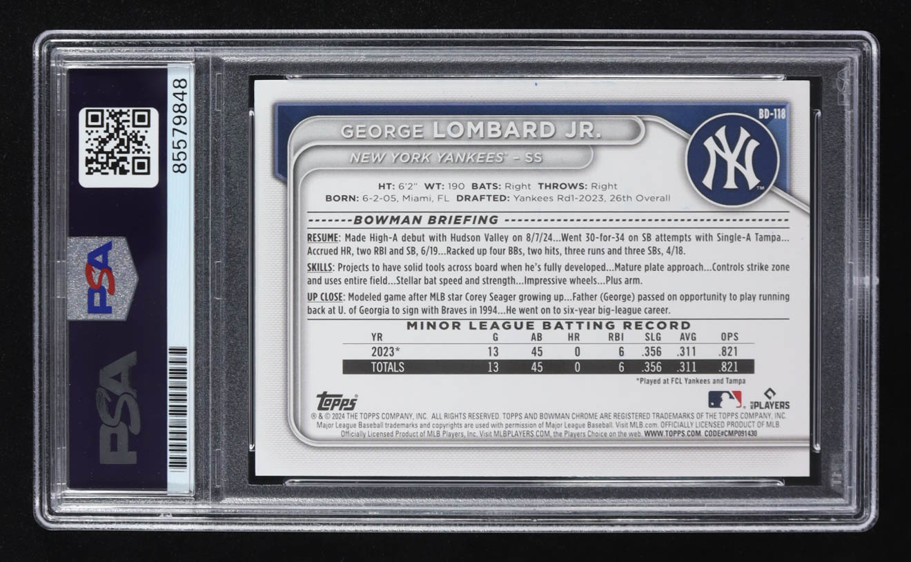 George Lombardo Jr. Signed 2024 Topps Bowman #BD-118 RC (PSA)