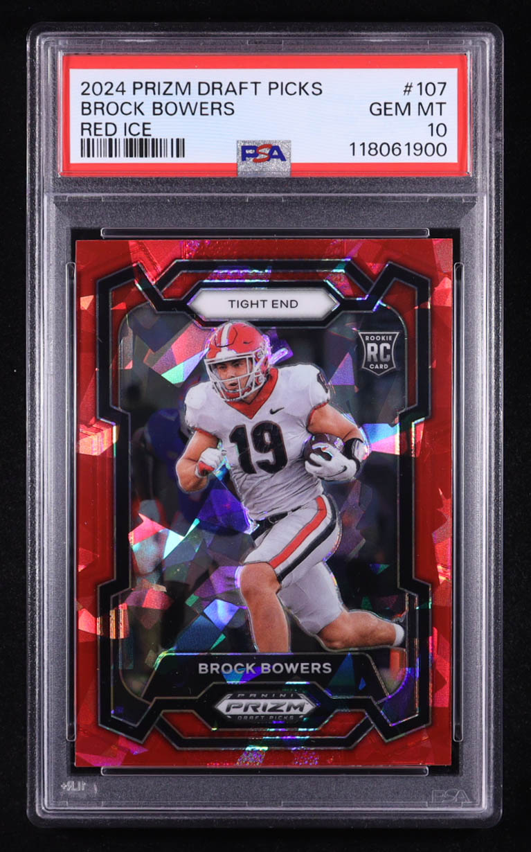 Brock Bowers 2024 Panini Prizm Draft Picks Prizms Red Ice #107 RC (PSA 10)