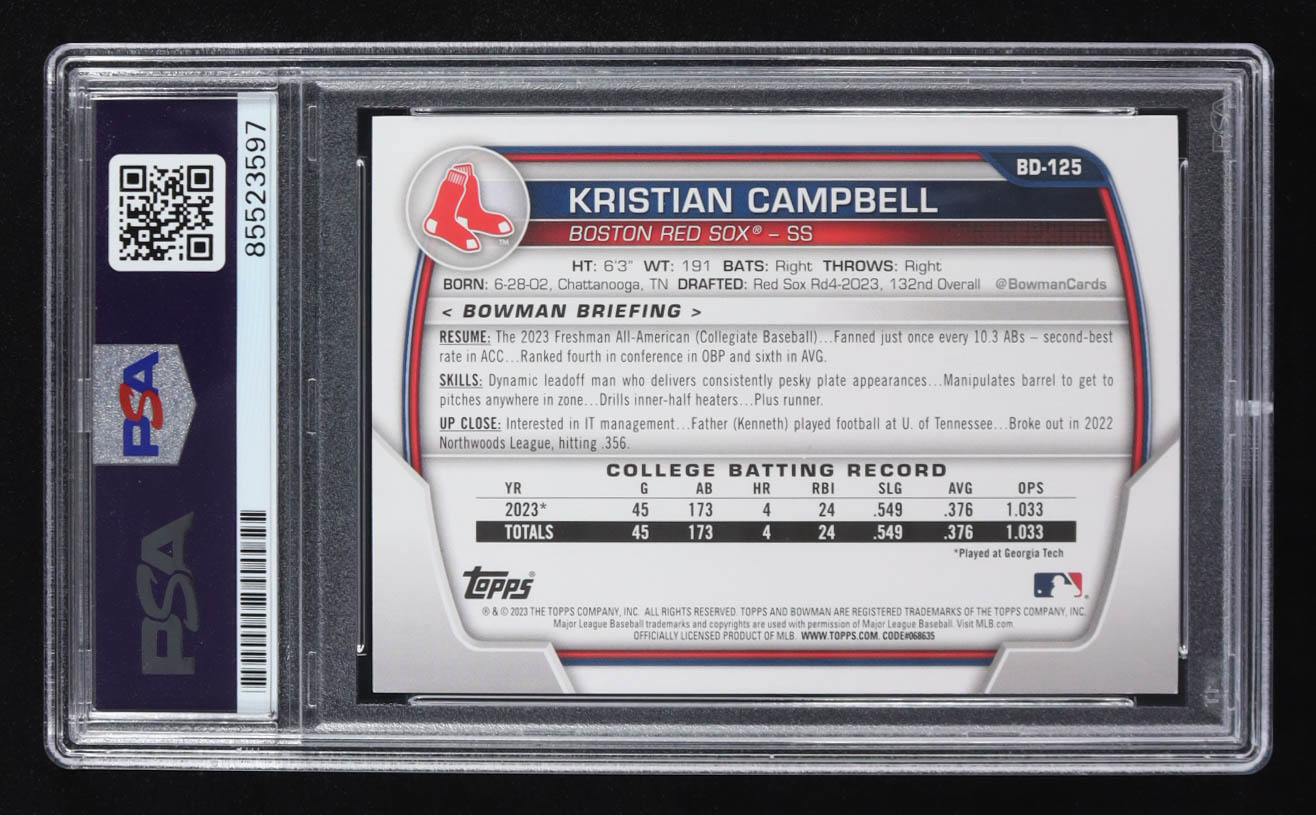 Kristian Campbell Signed 2023 Topps Bowman 1st #BD-125 RC (PSA)