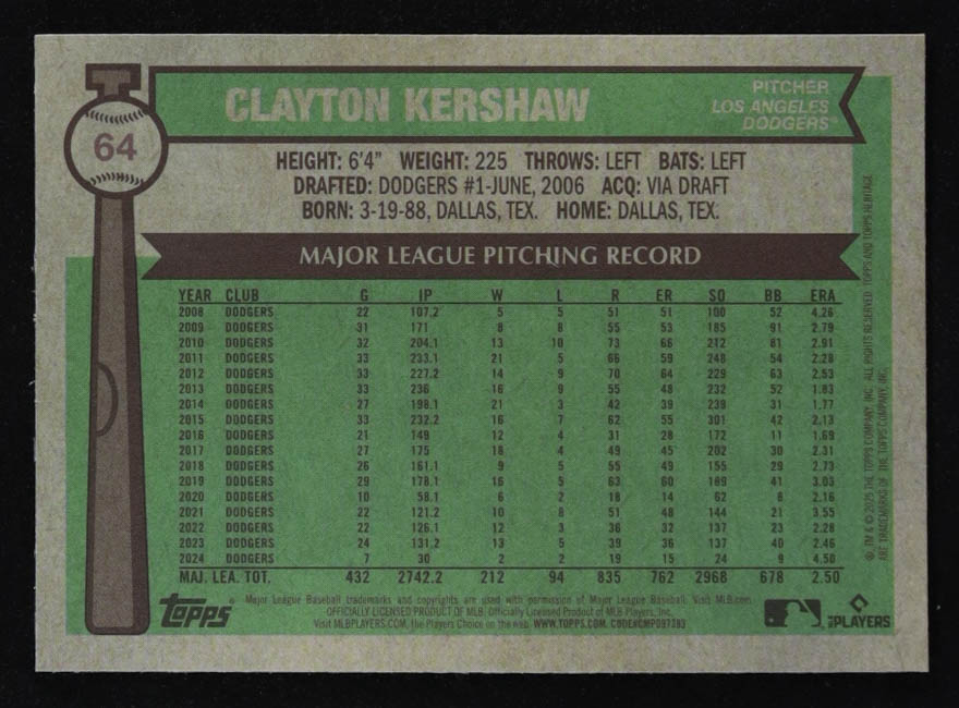 Clayton Kershaw 2025 Topps Heritage Chrome Blue Refractors #64 #003/150