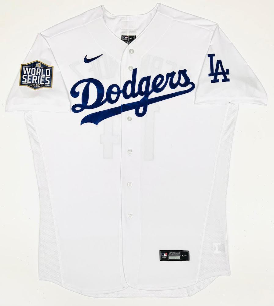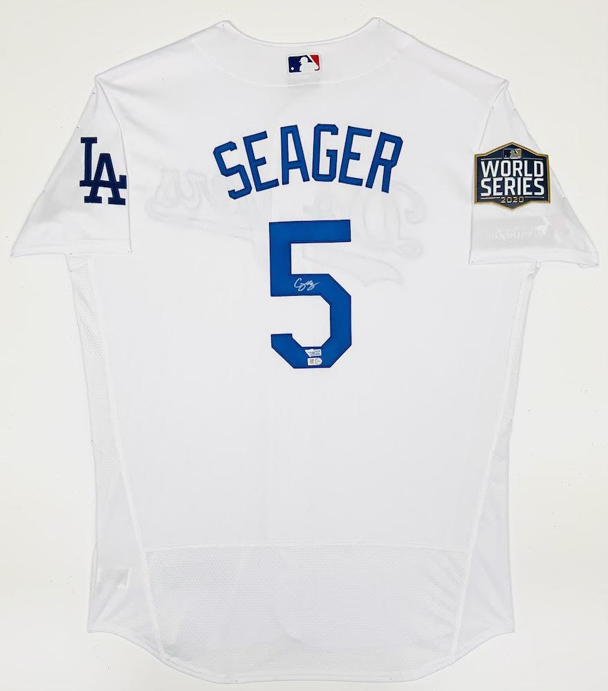 Corey Seager Signed Authentic Nike Dodgers Jersey with 2020 World Series Logo Patch (Fanatics & MLB)