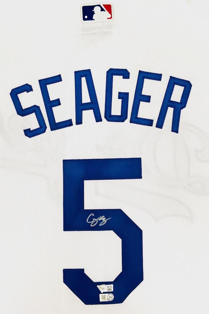 Nike jersey with everything sewn on, size 48 has been hand-signed by Corey Seager (Los Angeles Dodgers).