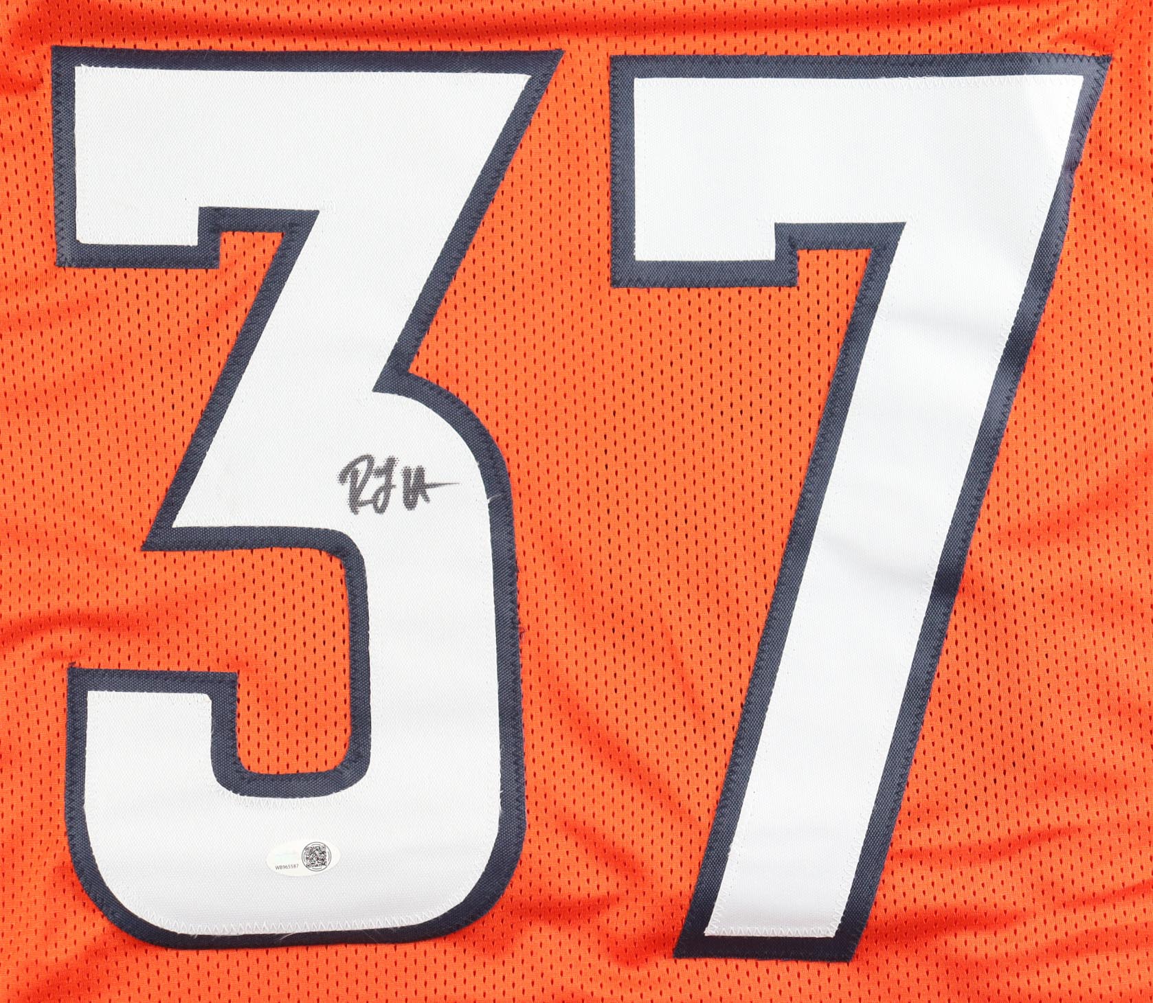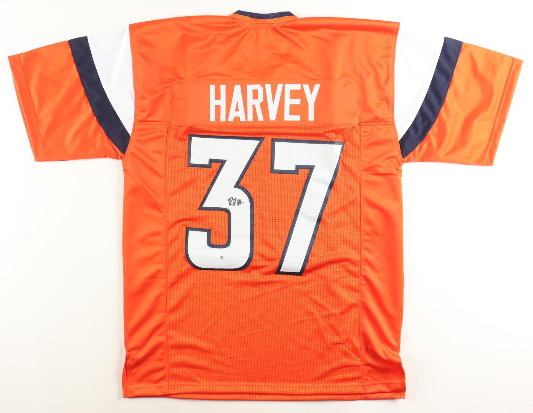 Custom jersey with everything sewn on, size XL. Hand-signed by RJ Harvey. Please note, the signature ink has bled.